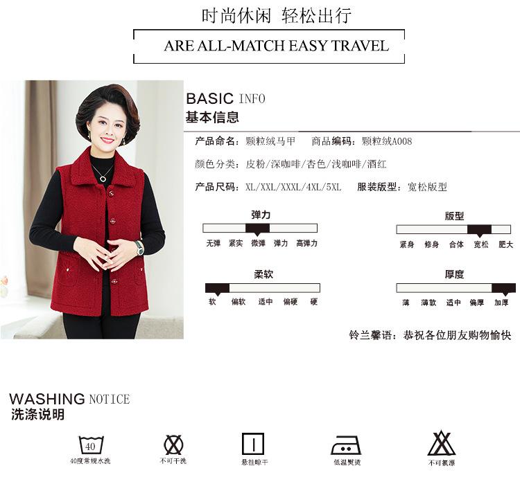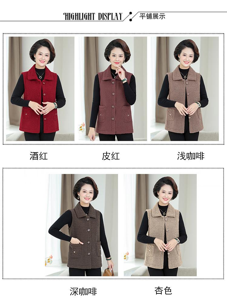 Ropa de Primavera para Mujeres de Mediana Edad y Mayores Chaleco de Terciopelo de Grano Ropa de Madre Chaleco de Primavera y Otoño Chaleco Chaleco de Primavera y Otoño Chaleco