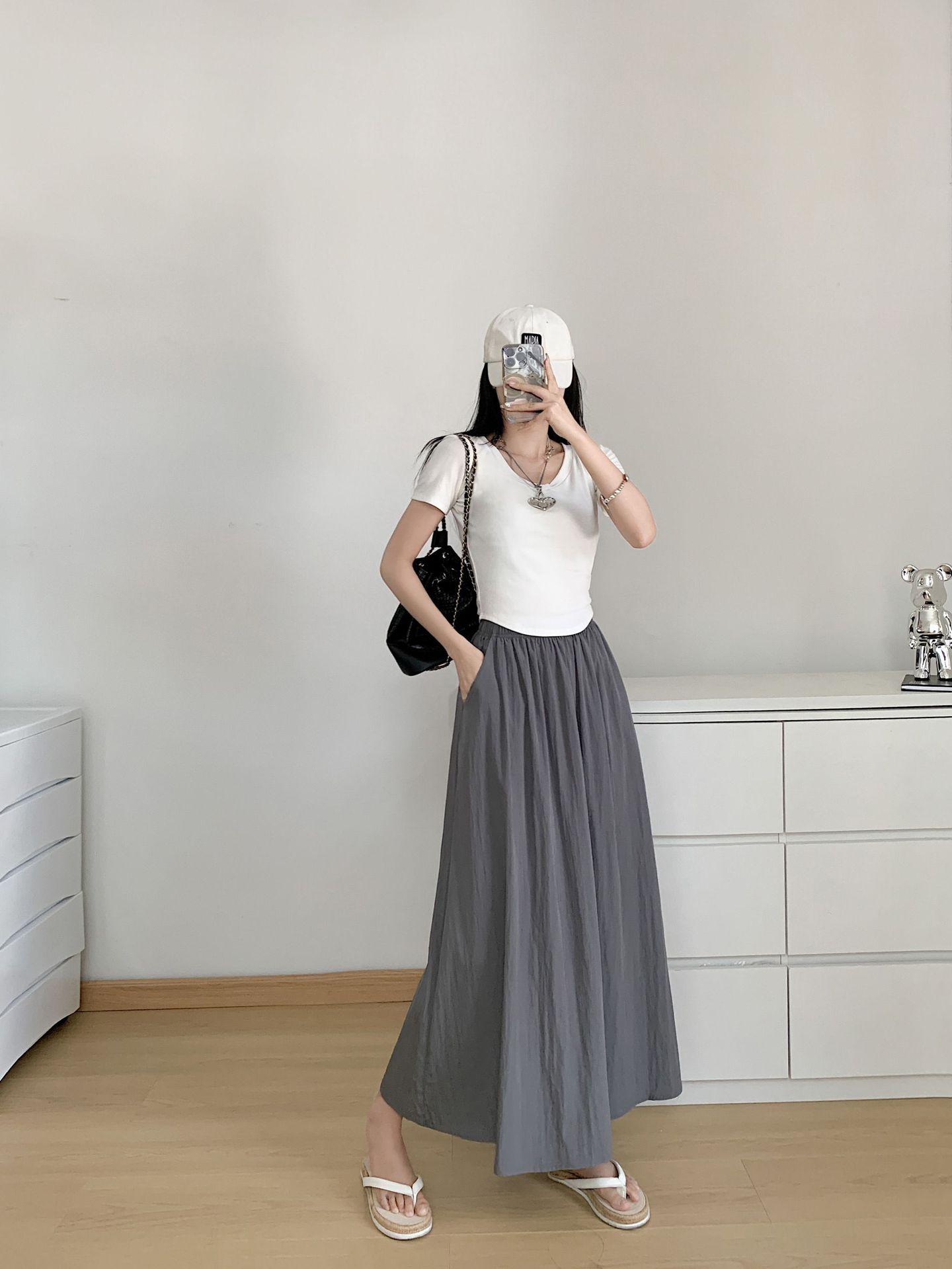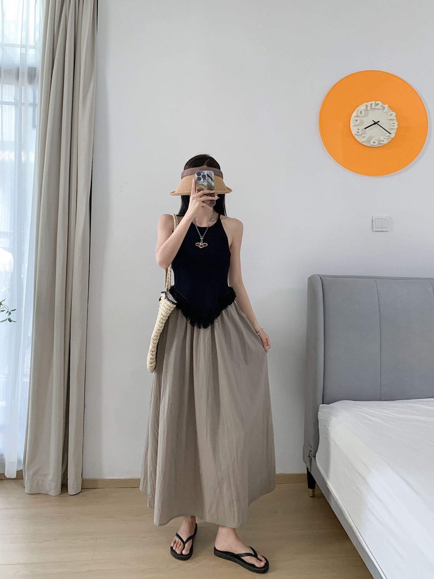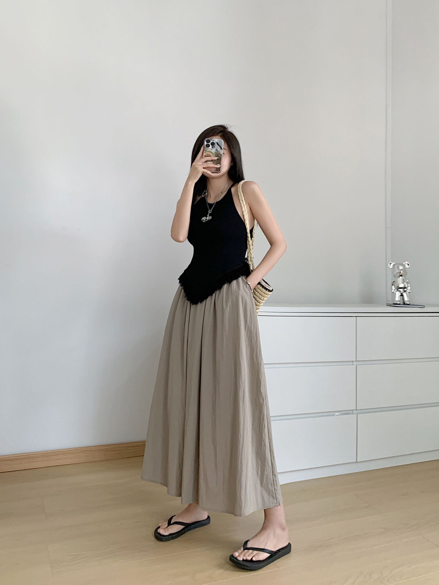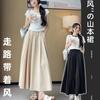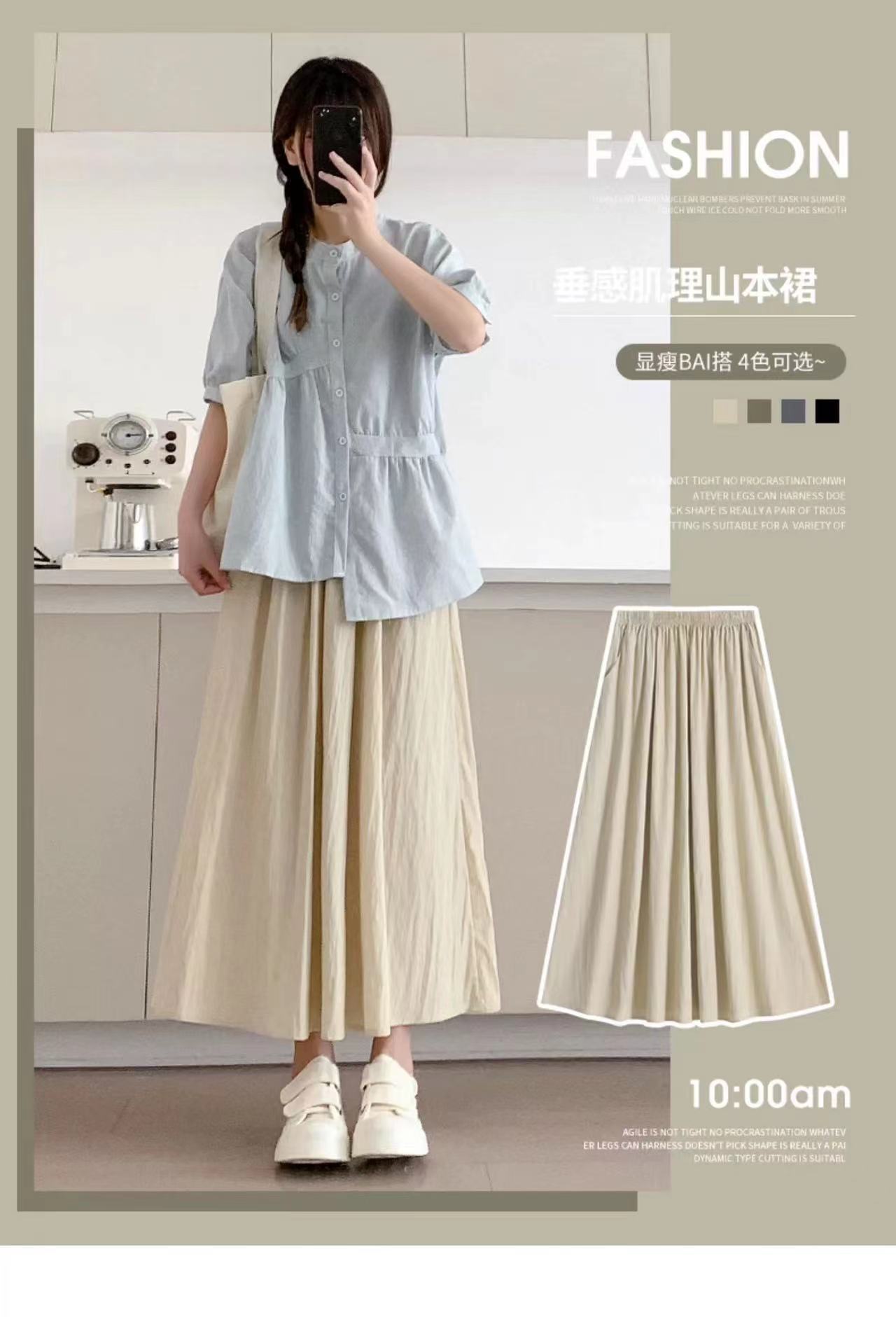 Albaricoque Falda Yamamoto Mujer 2025 Primavera Nueva Plisada Cintura Alta Retro Línea A Falda Paraguas Adelgazante Falda Media