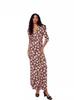 Vestido largo de verano con solapa y estampado de flores rosas, elástico, agradable para la piel, de una pieza, con cordones.