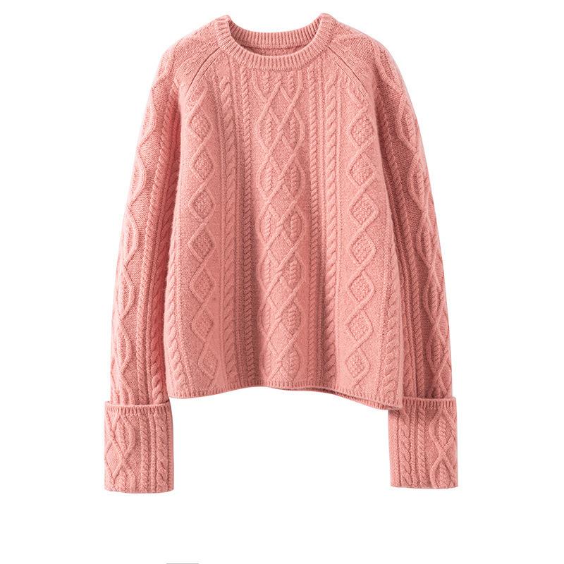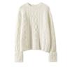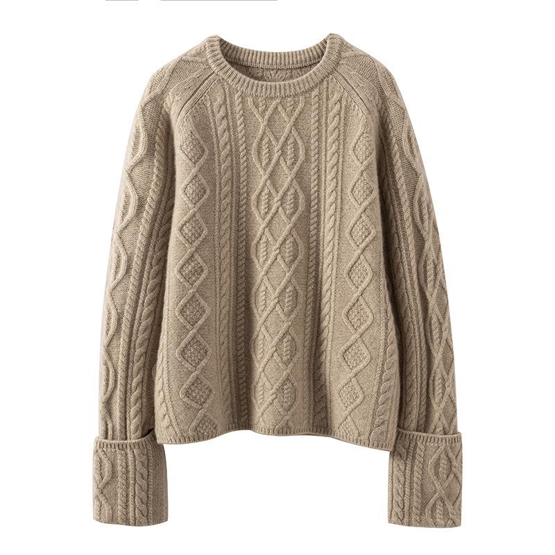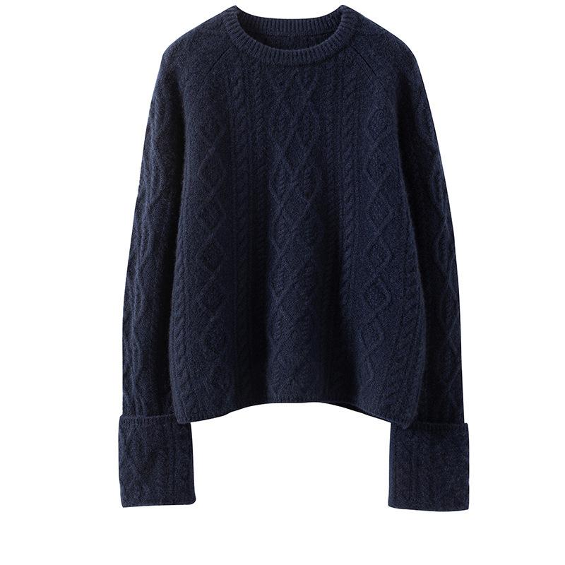 Suéter de lana suelta y grueso para mujer, de terciopelo, con cuello redondo y mangas torcidas, estilo holgado