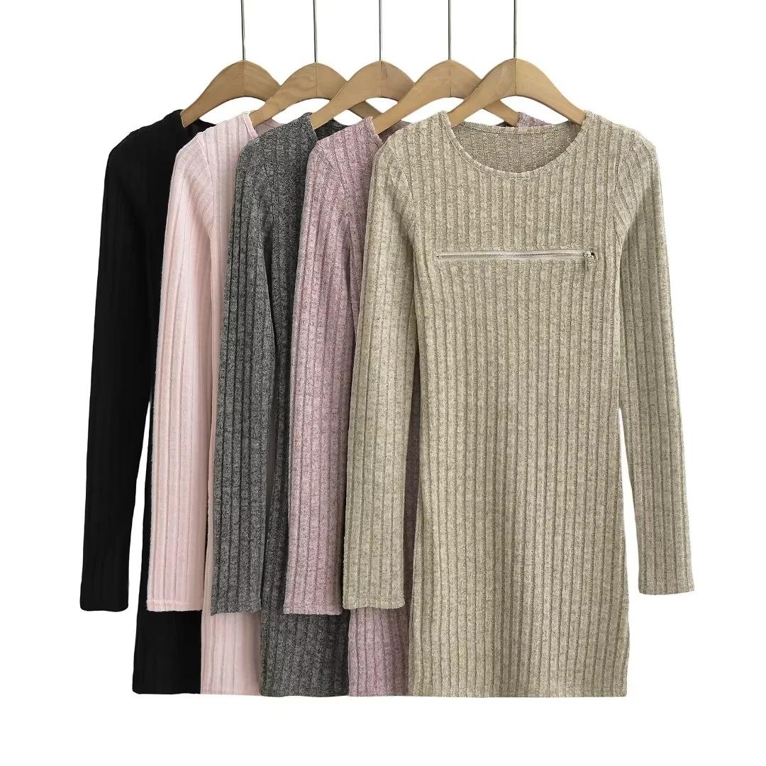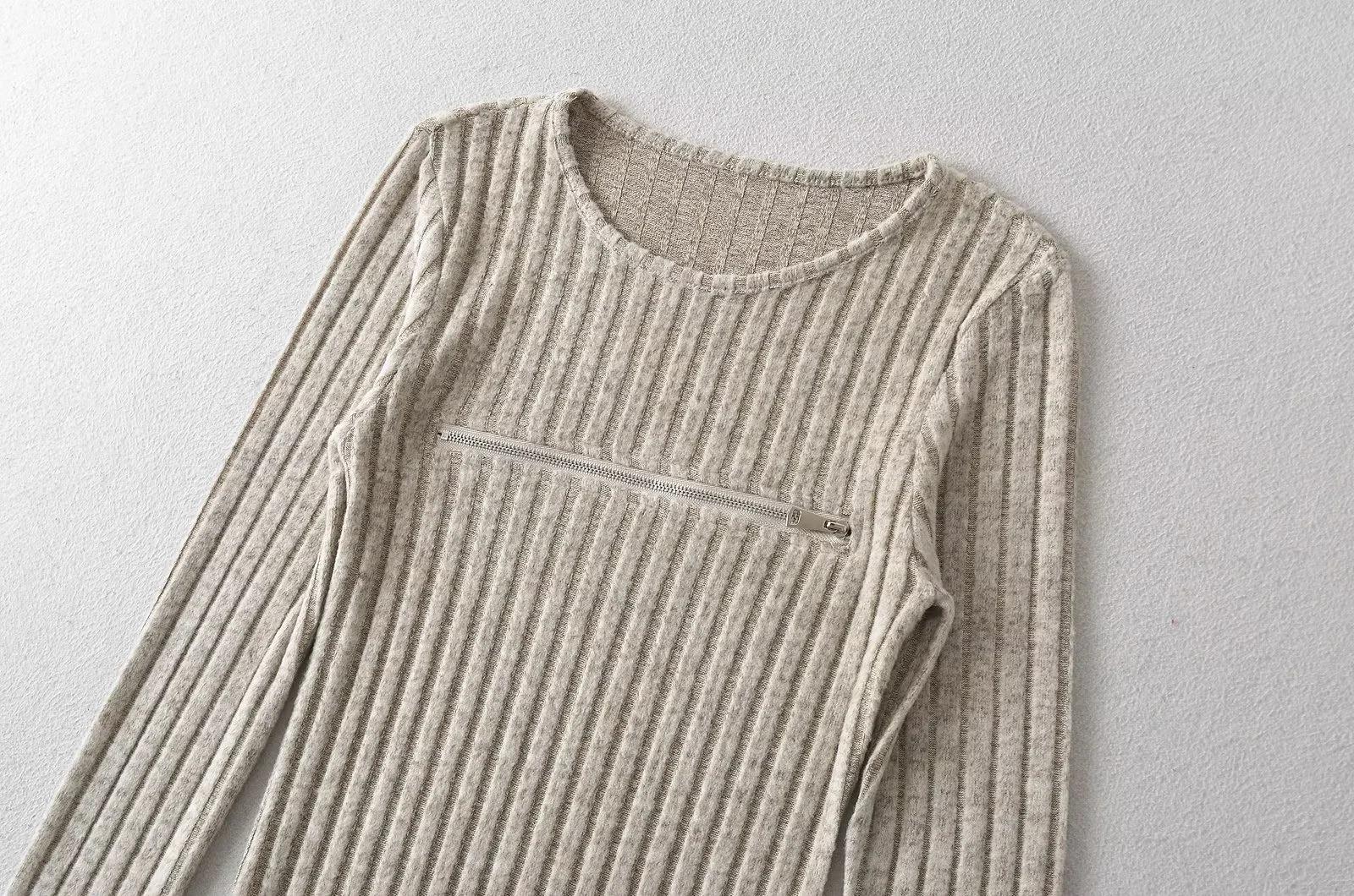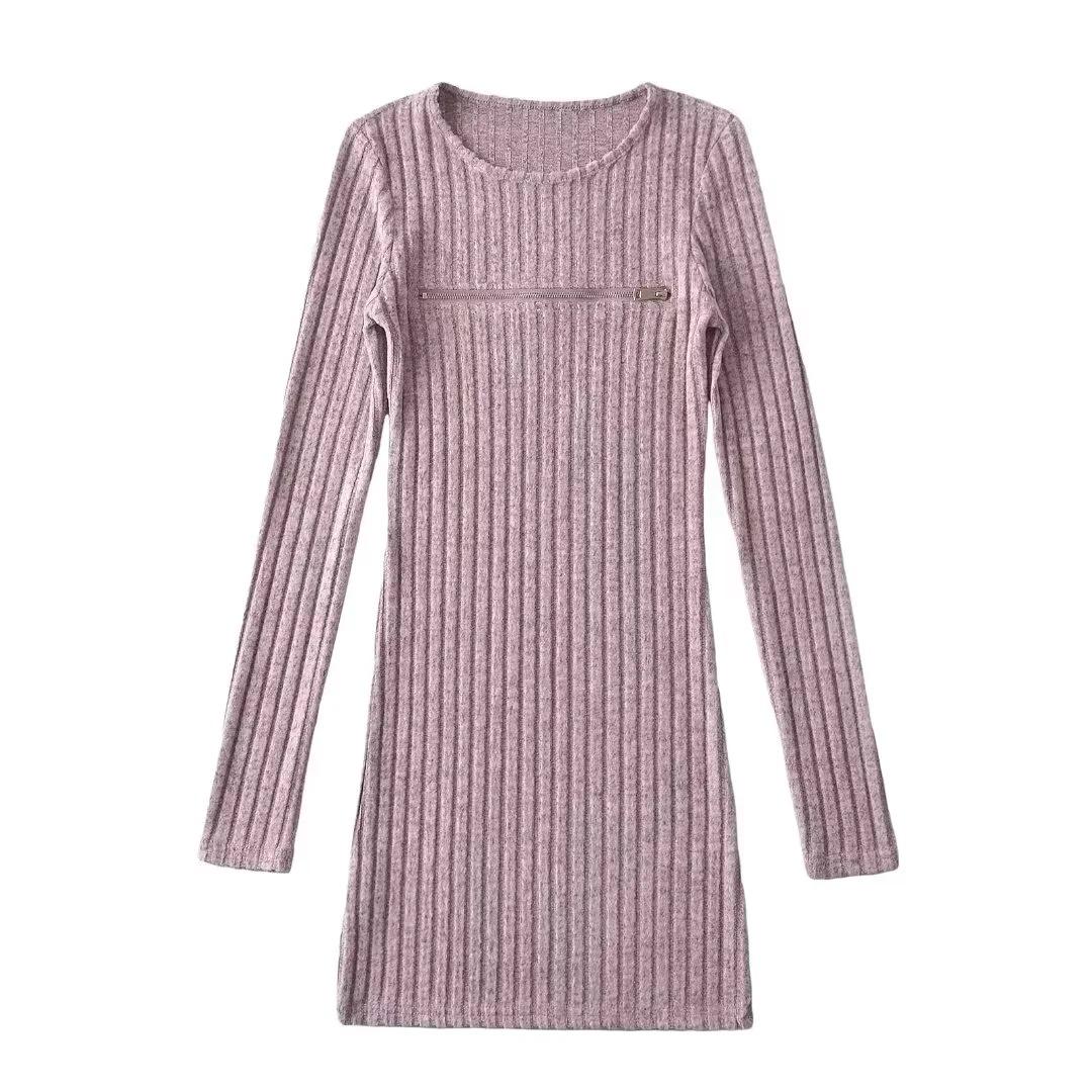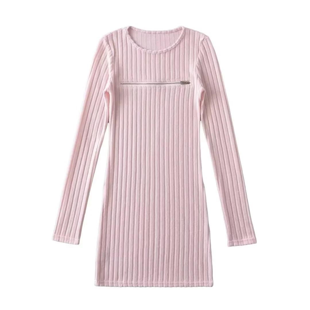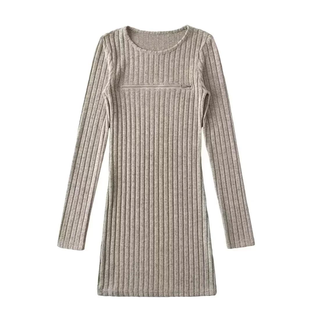 Falda tejida sexy calada de manga larga estilo coreano para mujer con cremallera en el pecho y falda de cadera ajustada