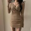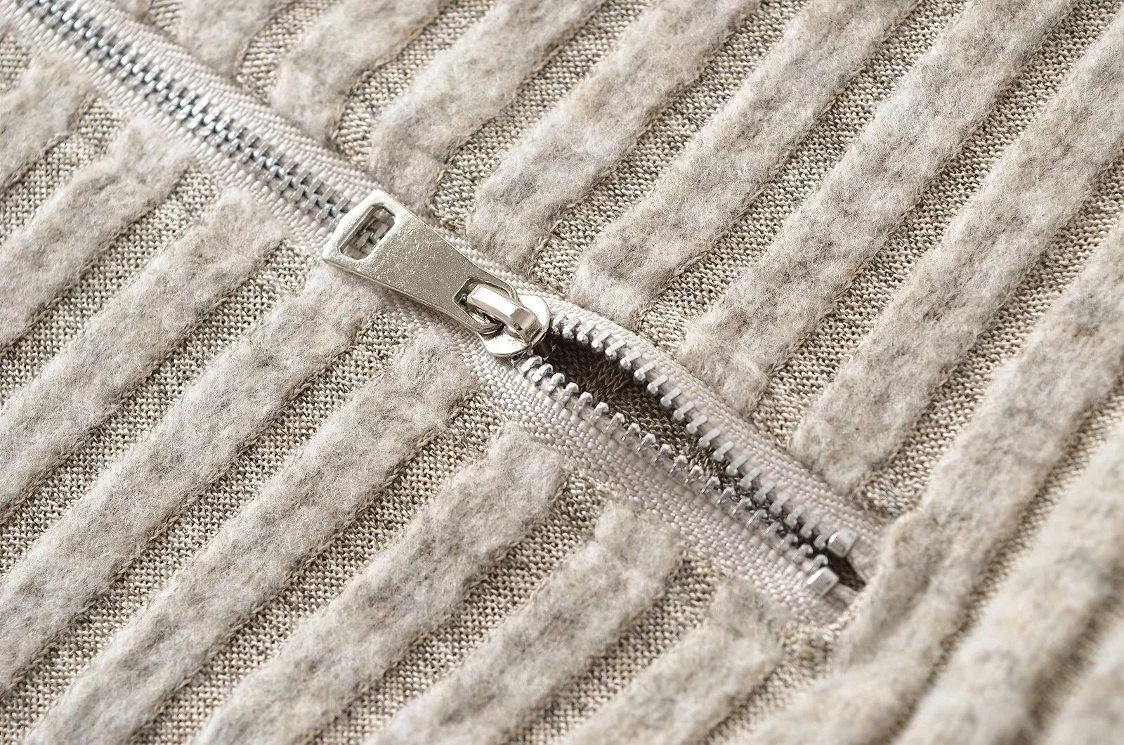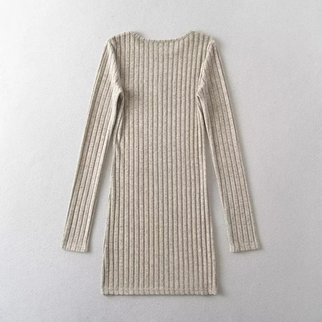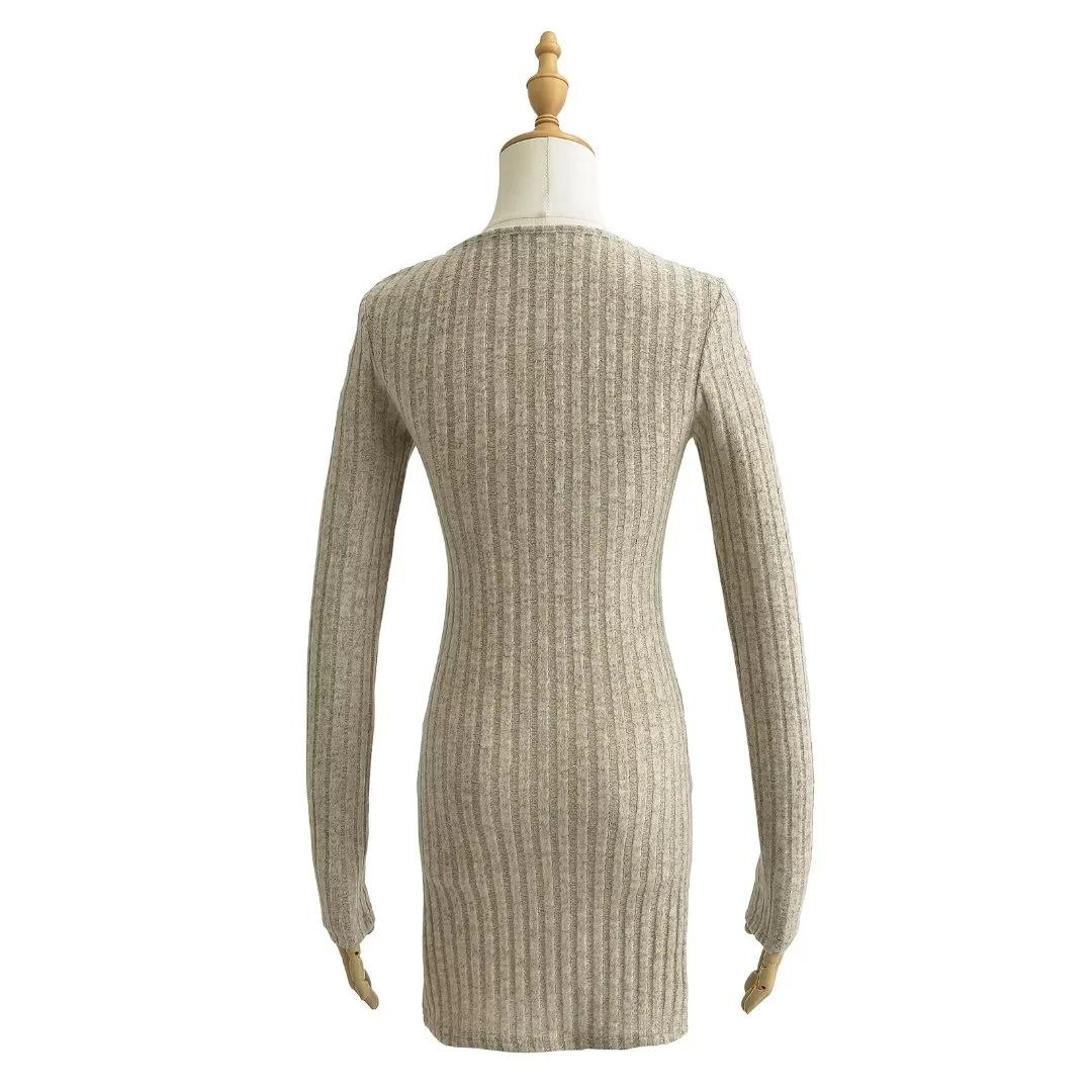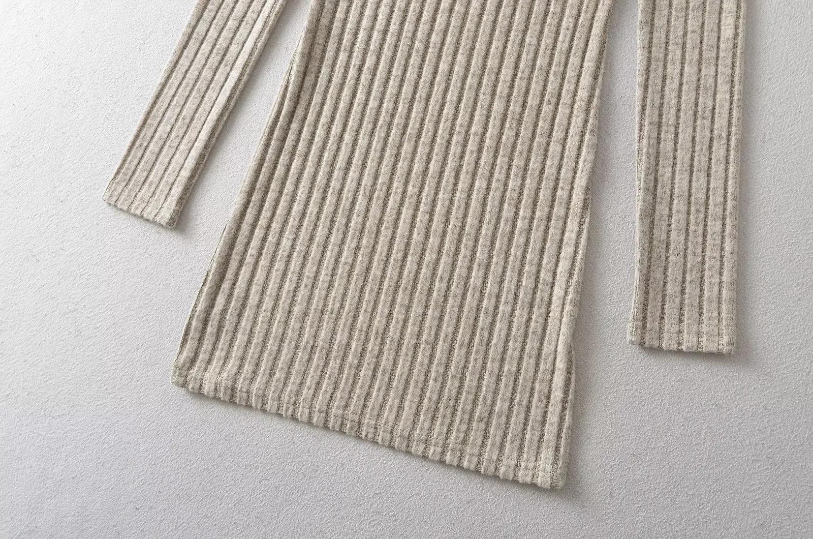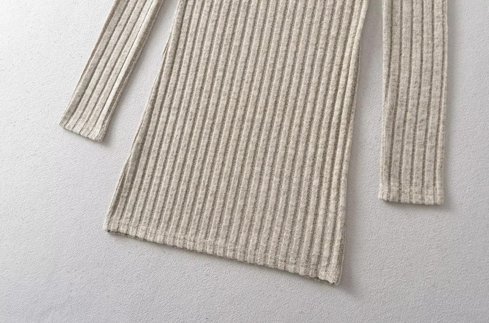 Falda tejida sexy calada de manga larga estilo coreano para mujer con cremallera en el pecho y falda de cadera ajustada