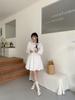 [Sin Devolución ni Cambio] Vestido Blanco con Encaje de Empalme Primavera Manga Abullonada Cintura Falda Francesa para Mujeres Petite