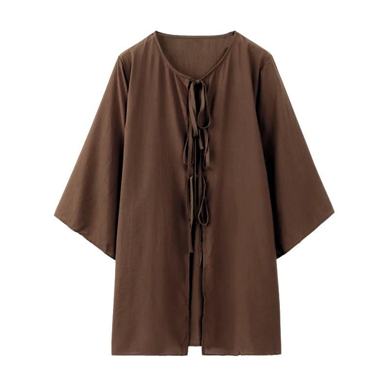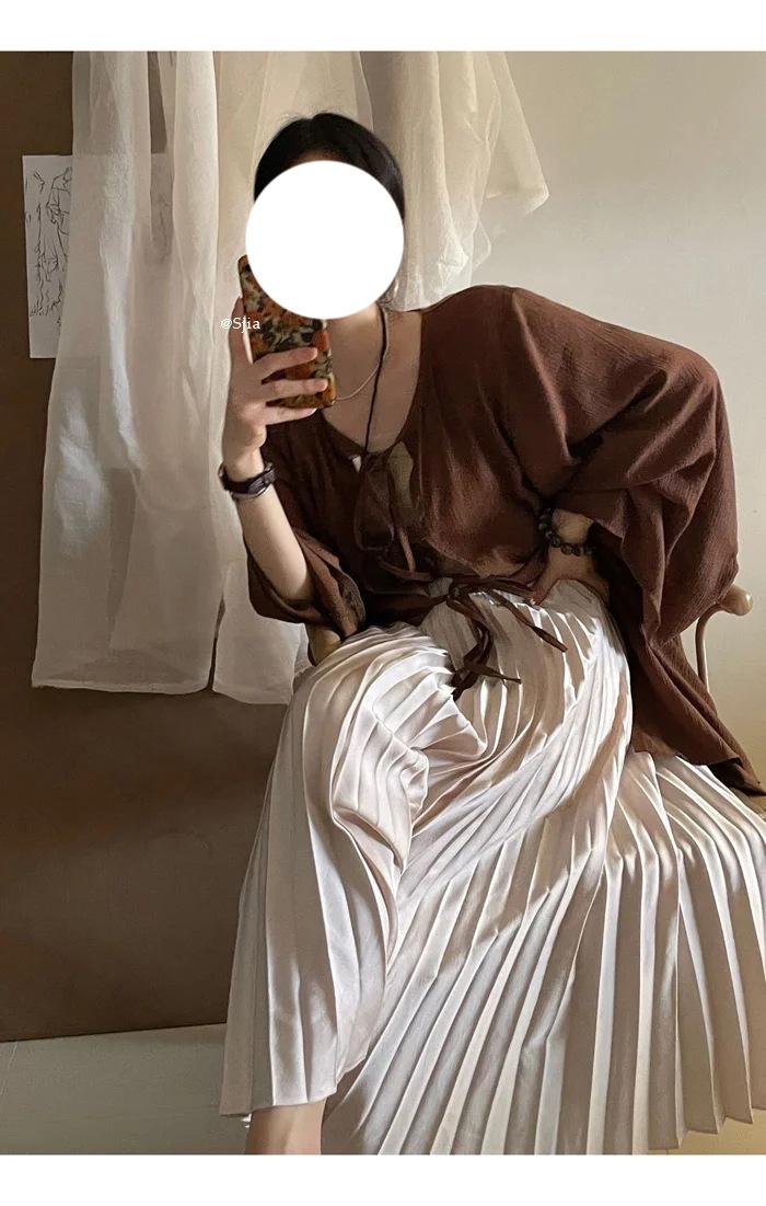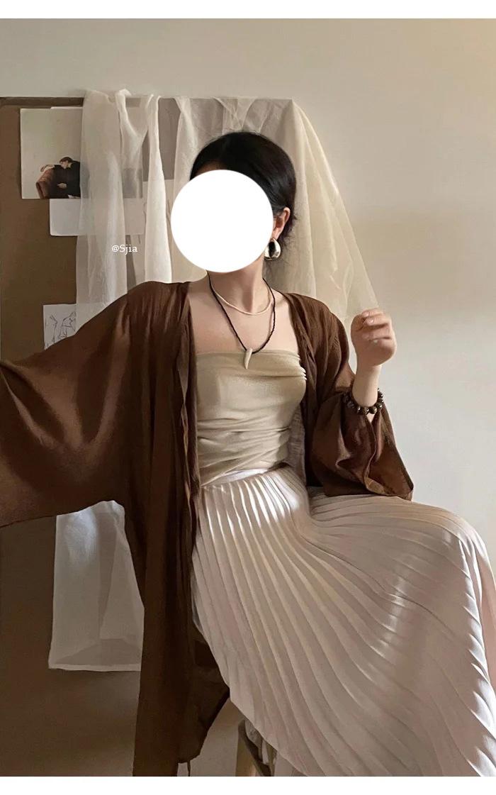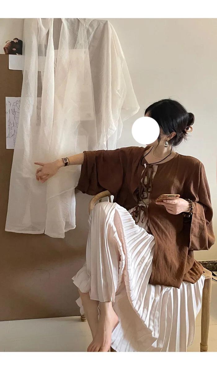 Chaqueta Camisera Retro de Tirantes y Largo Medio para Mujer Primavera y Otoño Nuevo Diseño Holgado Nicho Camisa Protectora del Sol Top de Manga Larga