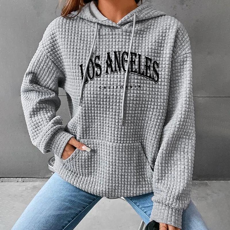 Ropa de otoño e invierno para mujer, nueva moda informal, suéter con capucha de manga larga con estampado de letras y gofres, suelto, comercio exterior, Amazon