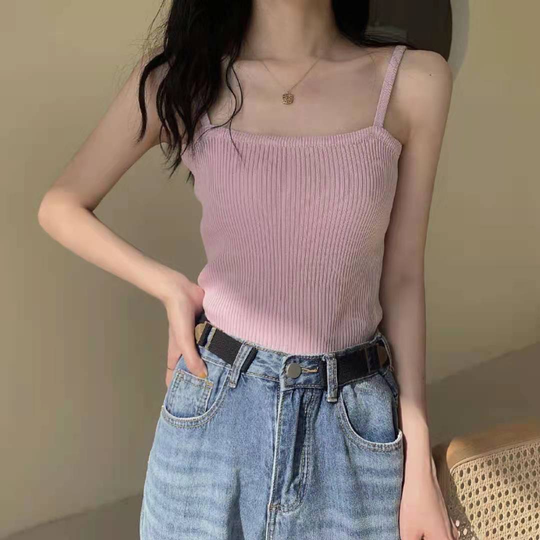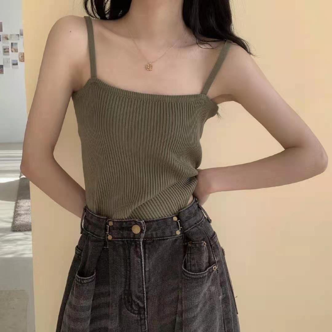 Camisola de color liso con base para mujer, diseño interior con escote en el pecho, estilo veraniego, bonita parte superior de tubo con espalda corta, ropa exterior de moda.