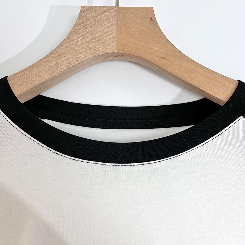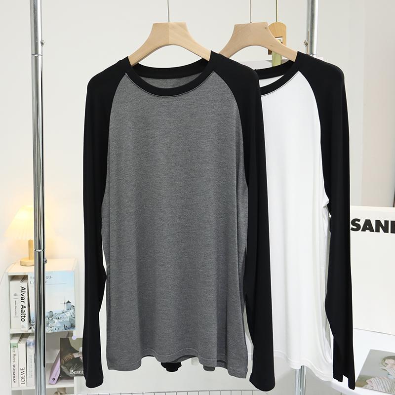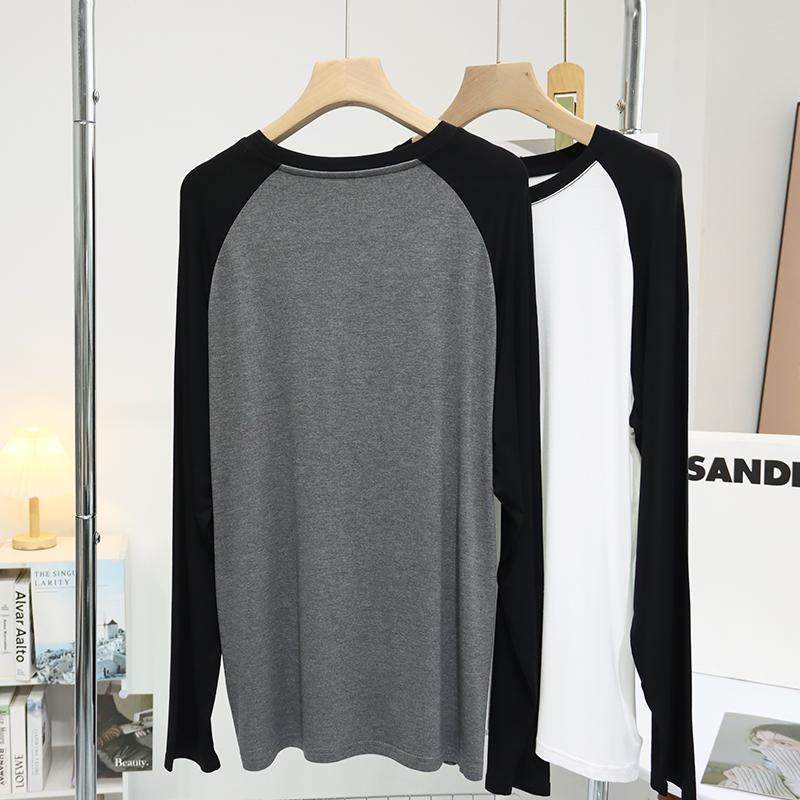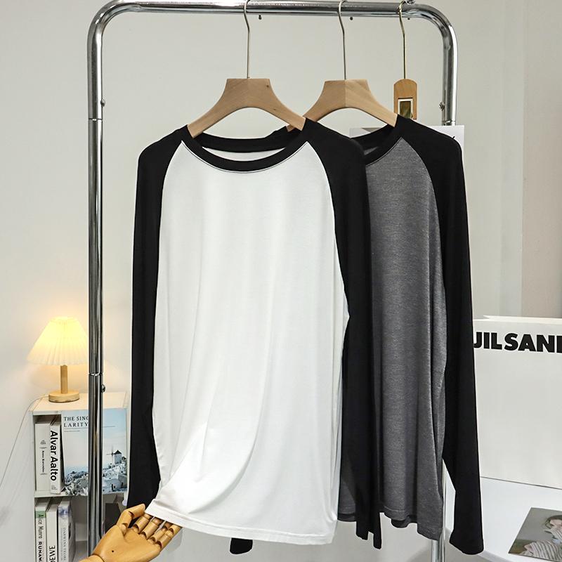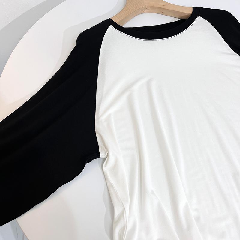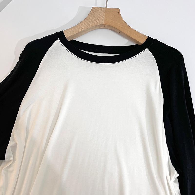 Camiseta de Manga Larga Raglán Modal Blanco y Negro para Mujer Primavera y Otoño 2025 Diseño Americano Nicho Top Holgado