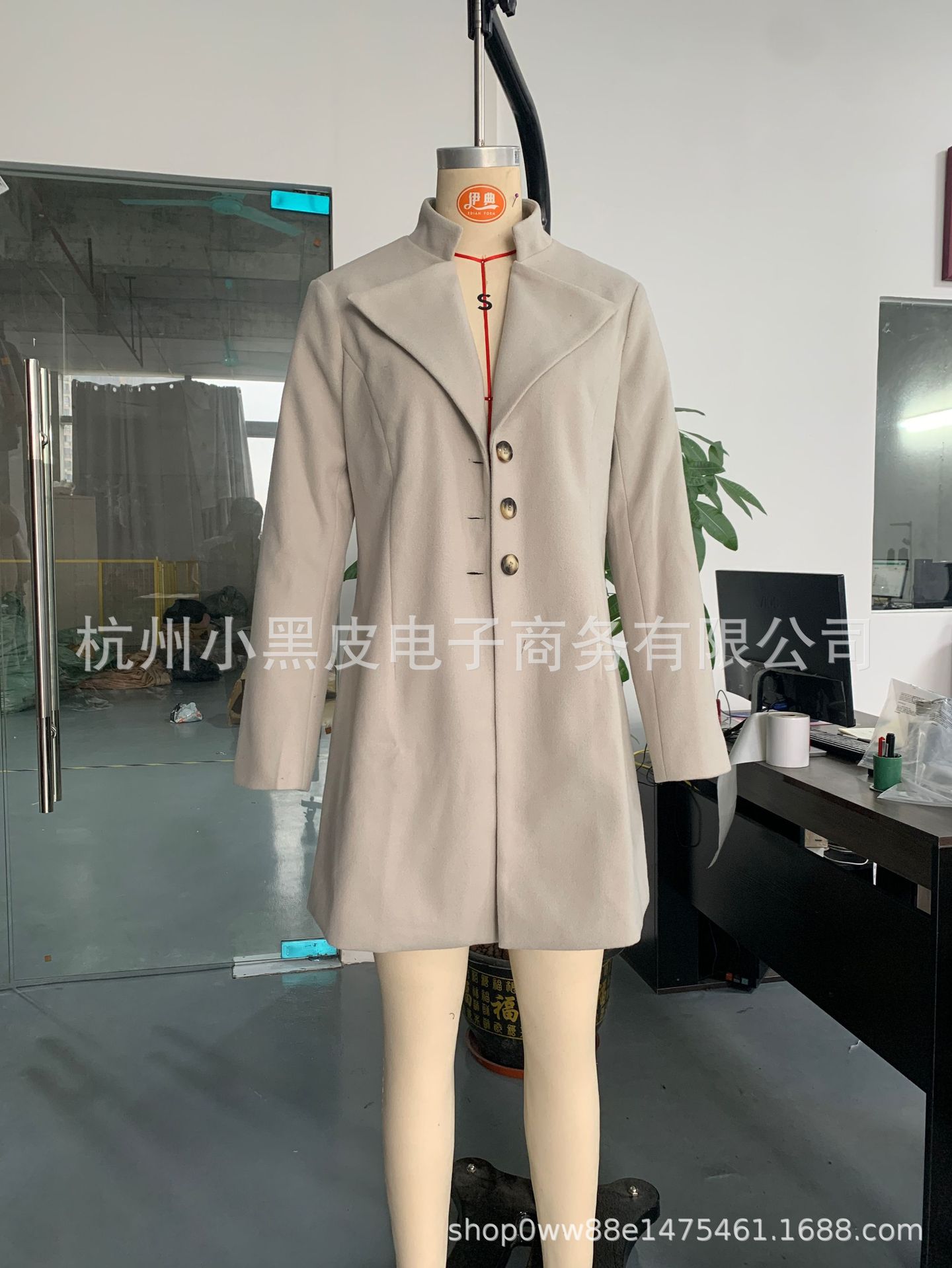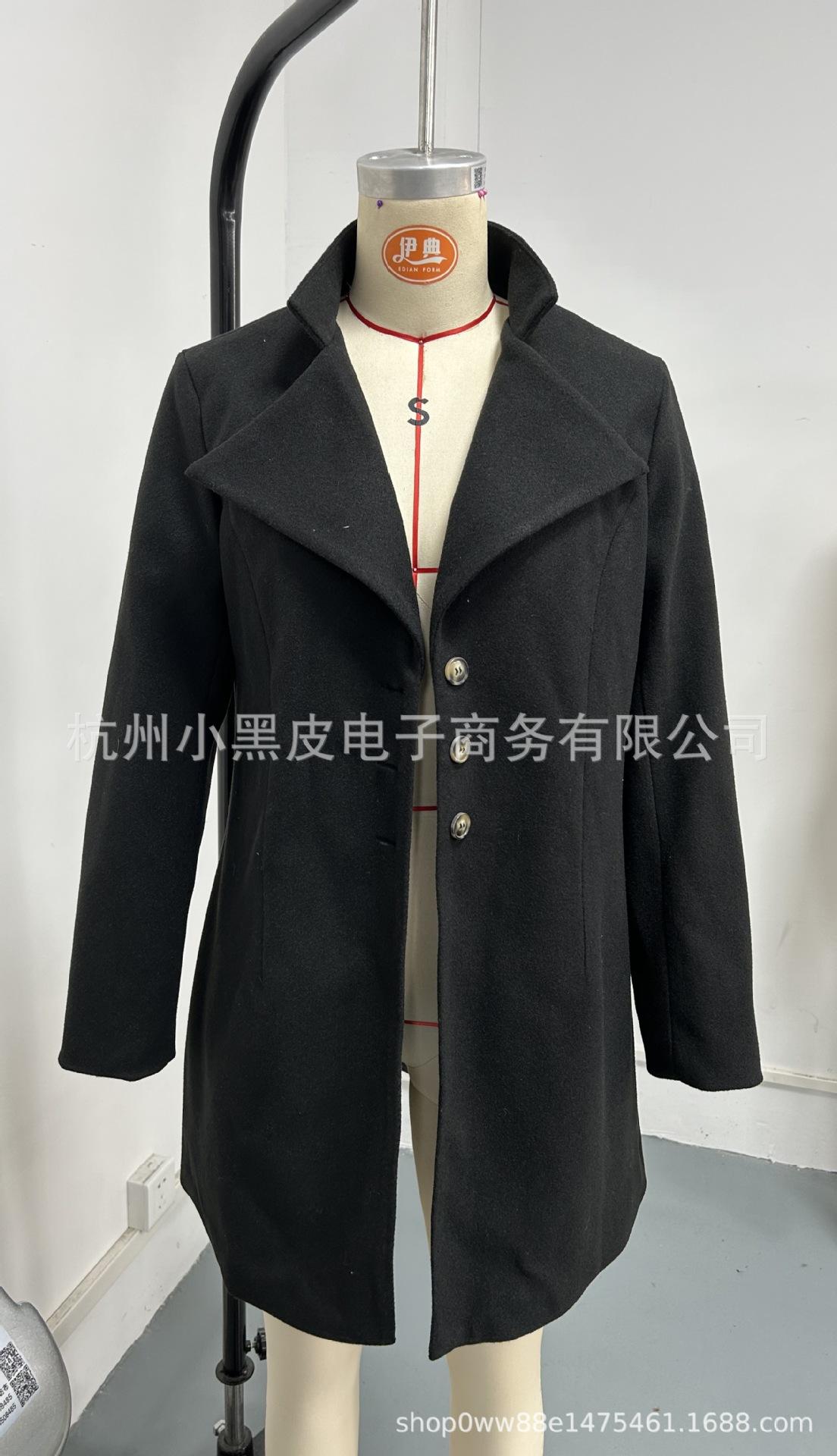 Nuevo abrigo de lana con solapa de color sólido de moda europea y americana para mujer transfronterizo de Amazon 2025 en stock al por mayor