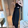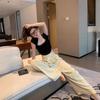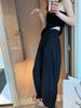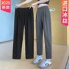 Pantalones casuales holgados y ajustados de moda para mujer, de verano, finos, negros, de cintura alta y pierna ancha, venta al por mayor