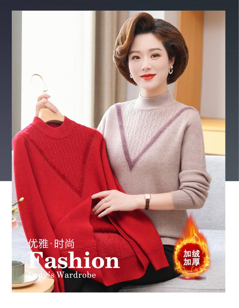 Suéter de invierno para mamá con forro polar, camisa básica gruesa, estilo occidental, ropa interior cálida, top de punto de terciopelo de una pieza para mujeres de mediana edad y mayores