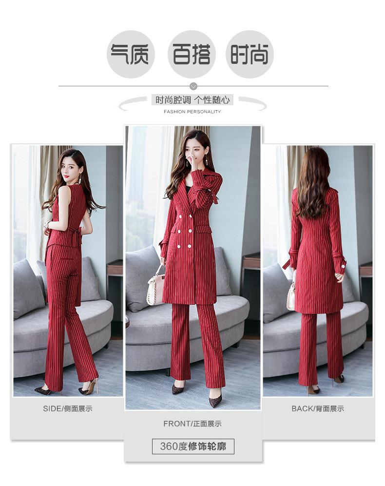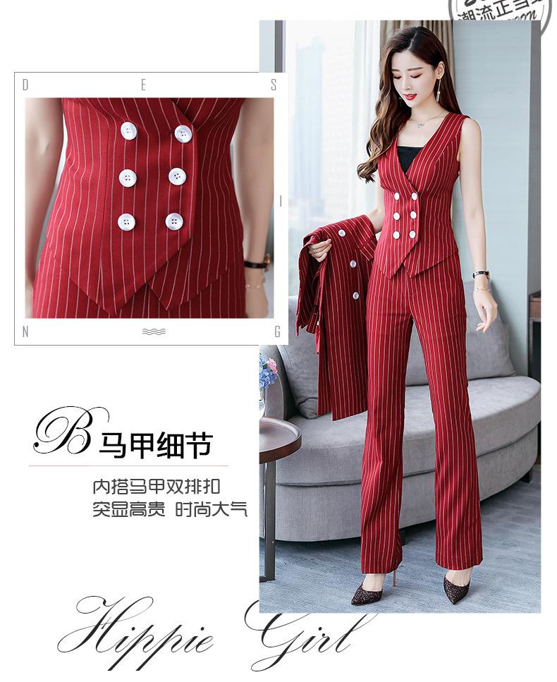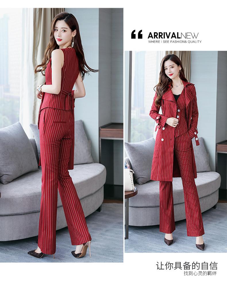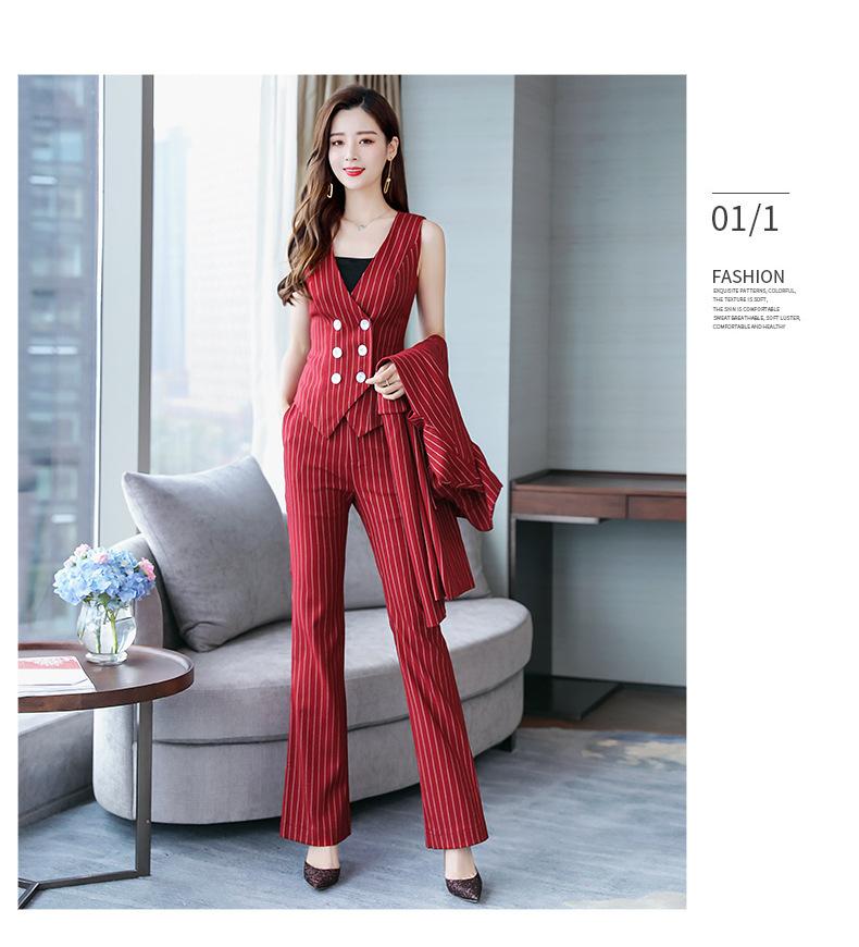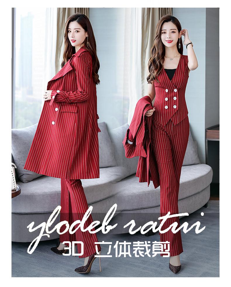 Chaleco elegante a rayas de tres piezas, estilo coreano, de moda, ajustado, para primavera y otoño, traje profesional OL de moda.