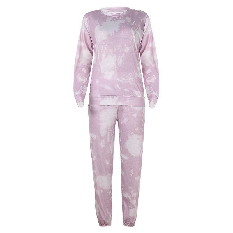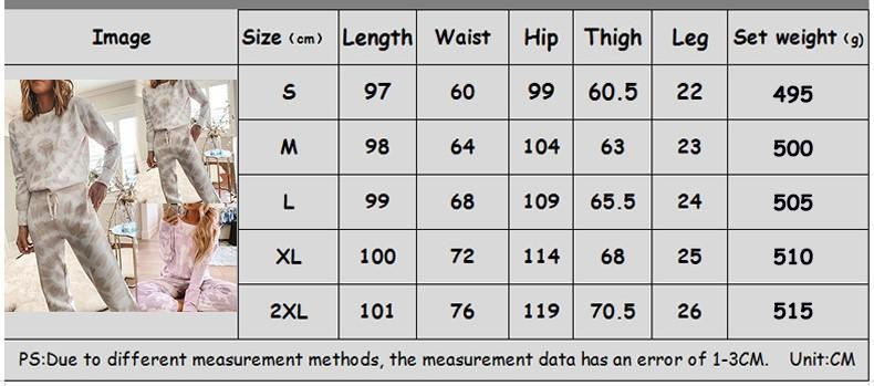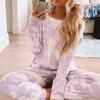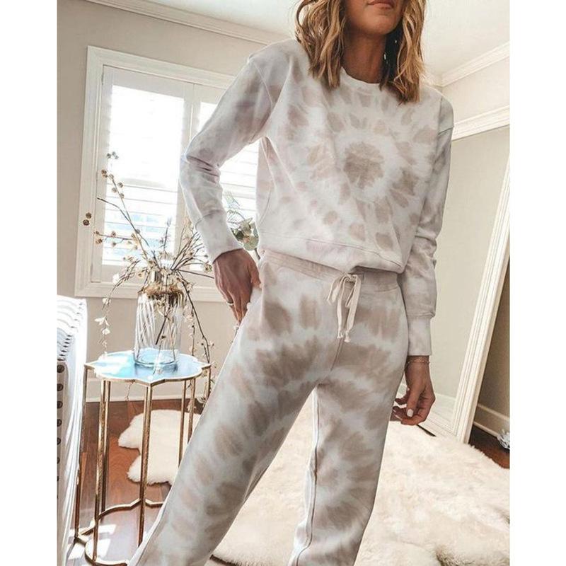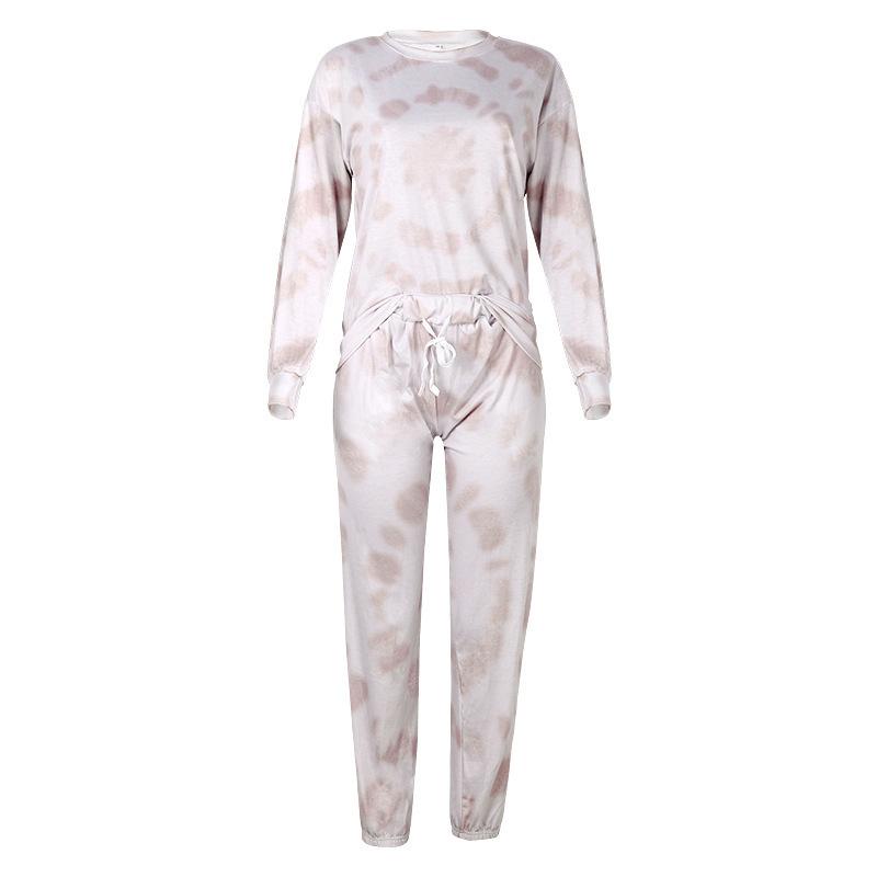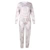 Traje de mujer de talla grande europeo y americano de otoño e invierno transfronterizo de Amazon, traje informal de manga larga con estampado tie-dye para estar en casa.