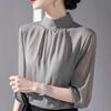 Camisa Blanca de Moda Otoño e Invierno con Doble Botonadura para Reducir la Edad para Mujer Top Interior Camisa Holgada con Volantes Top de Moda para Mujer