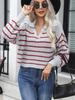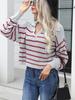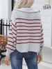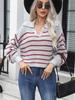 Europeo y Americano Nuevo Otoño e Invierno 2023 Estilo Amazon Cuello Polo Suéter Pulóver Sencillo de Alta Gama con Rayas Contrastantes