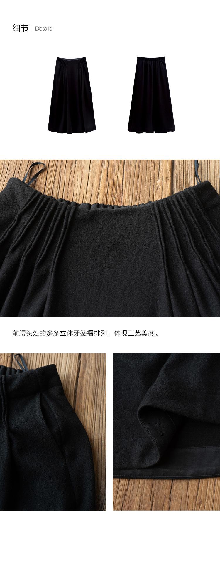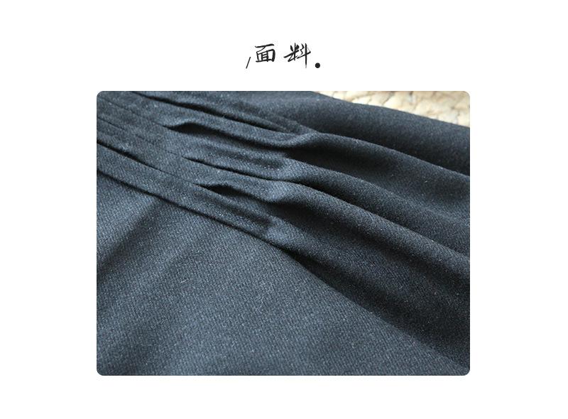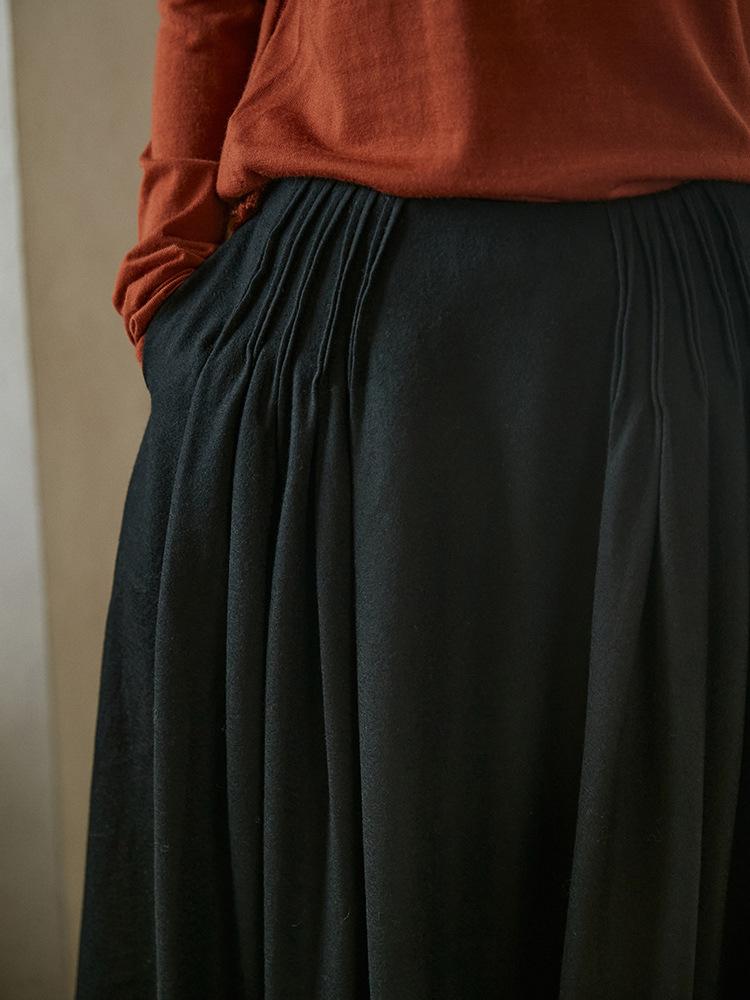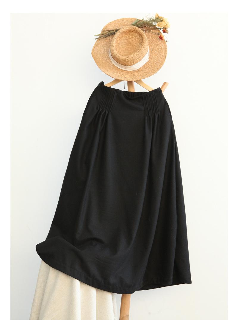 Falda Paraguas Suelta de Lana Franela Negra de Cintura Alta con Pliegues para Mujer Negro Rosa 221016 Casual Versátil