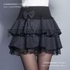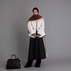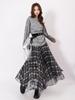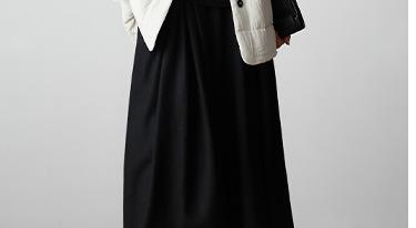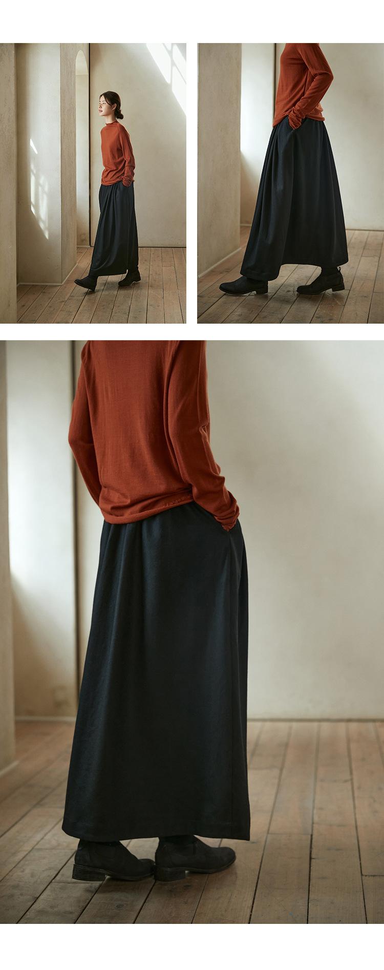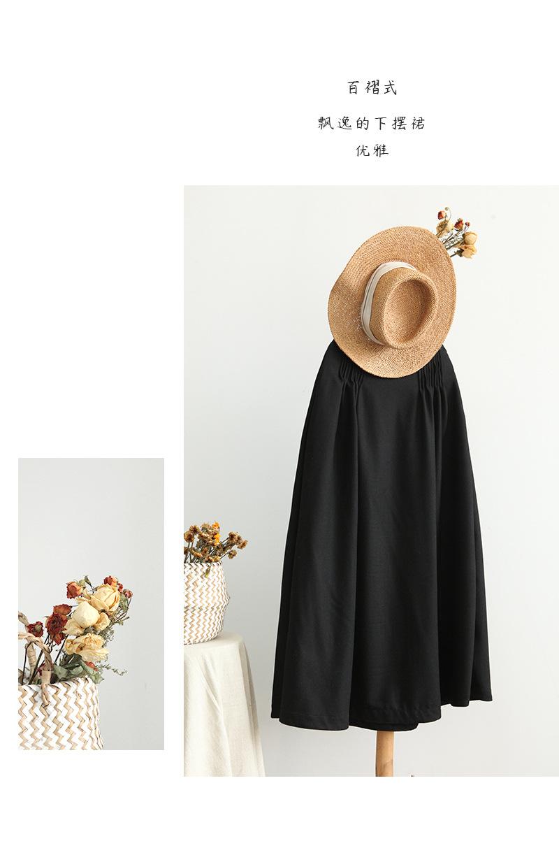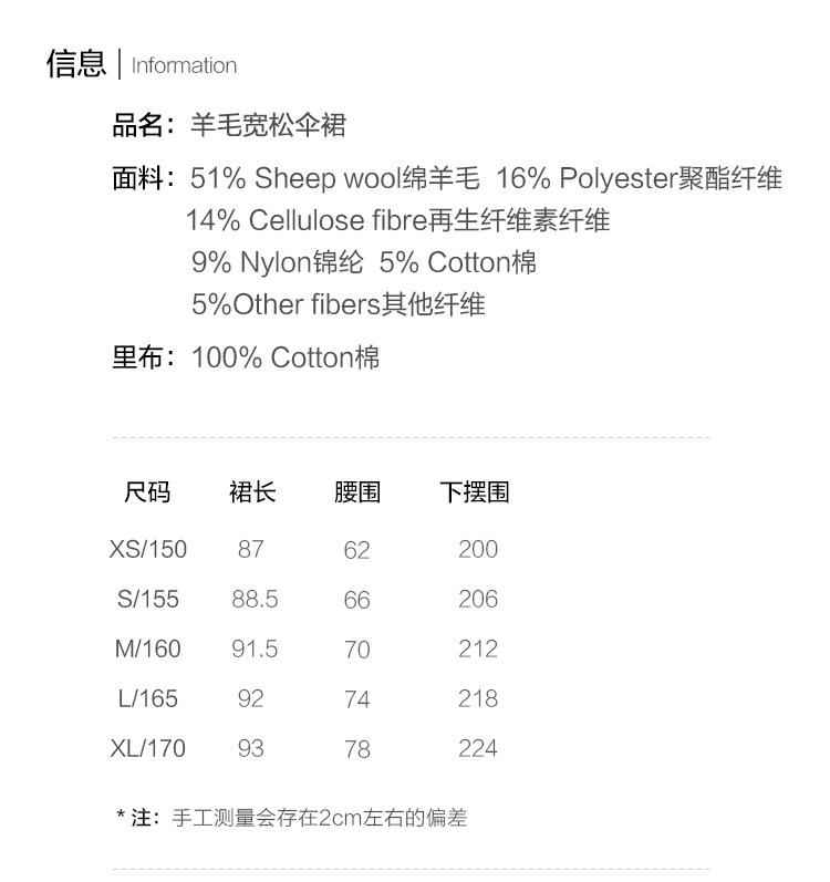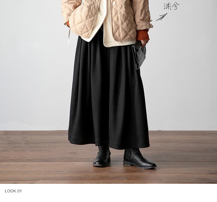 Falda Paraguas Suelta de Lana Franela Negra de Cintura Alta con Pliegues para Mujer Negro Rosa 221016 Casual Versátil