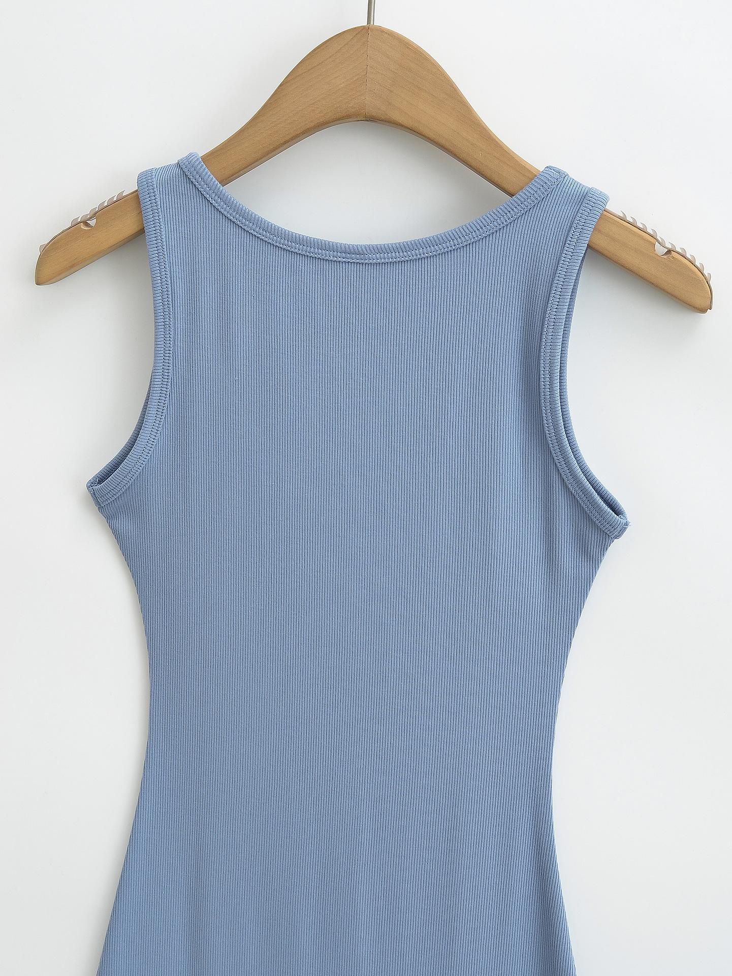 G022-24 principios de primavera nuevo estilo europeo y americano chica caliente puro deseo sexy gran cuello en U chaleco sin mangas mono falda