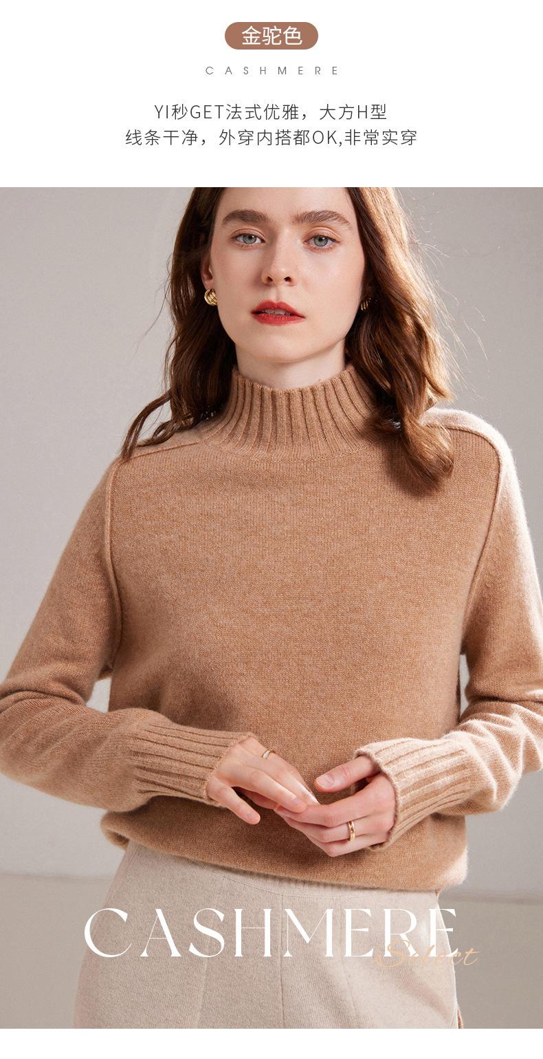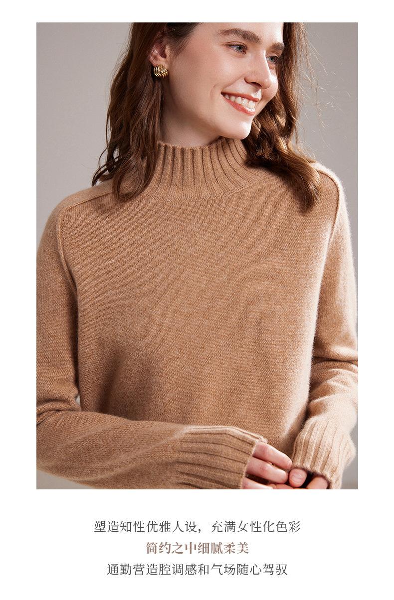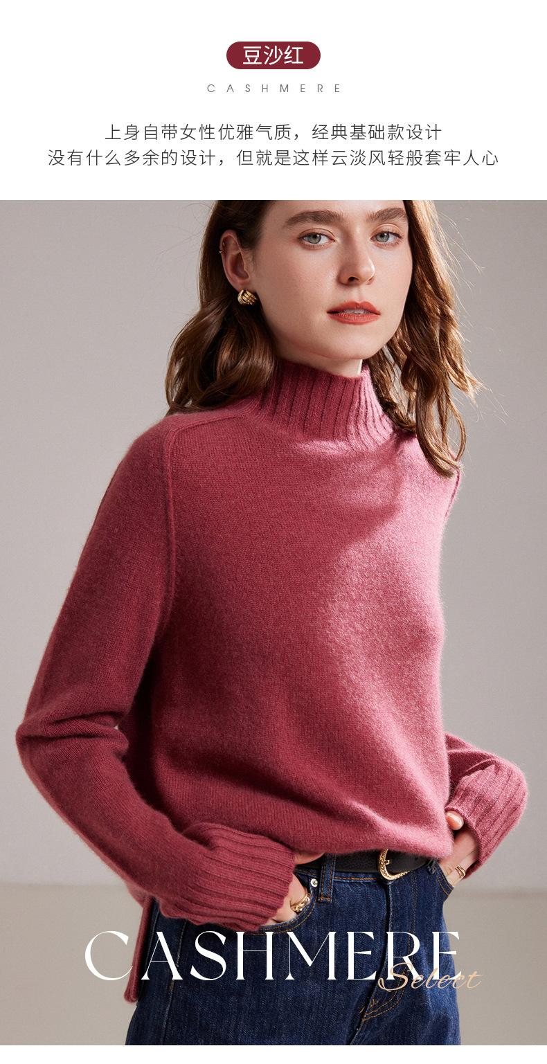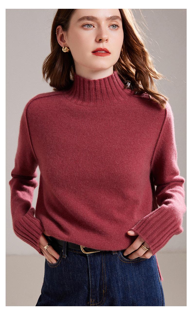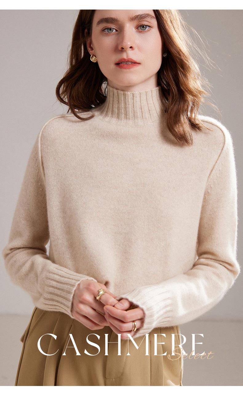 Suéter de cachemira para mujer, jersey de cuello alto medio, otoño e invierno, nuevo jersey de cachemira pura, jersey corto de punto de color liso.