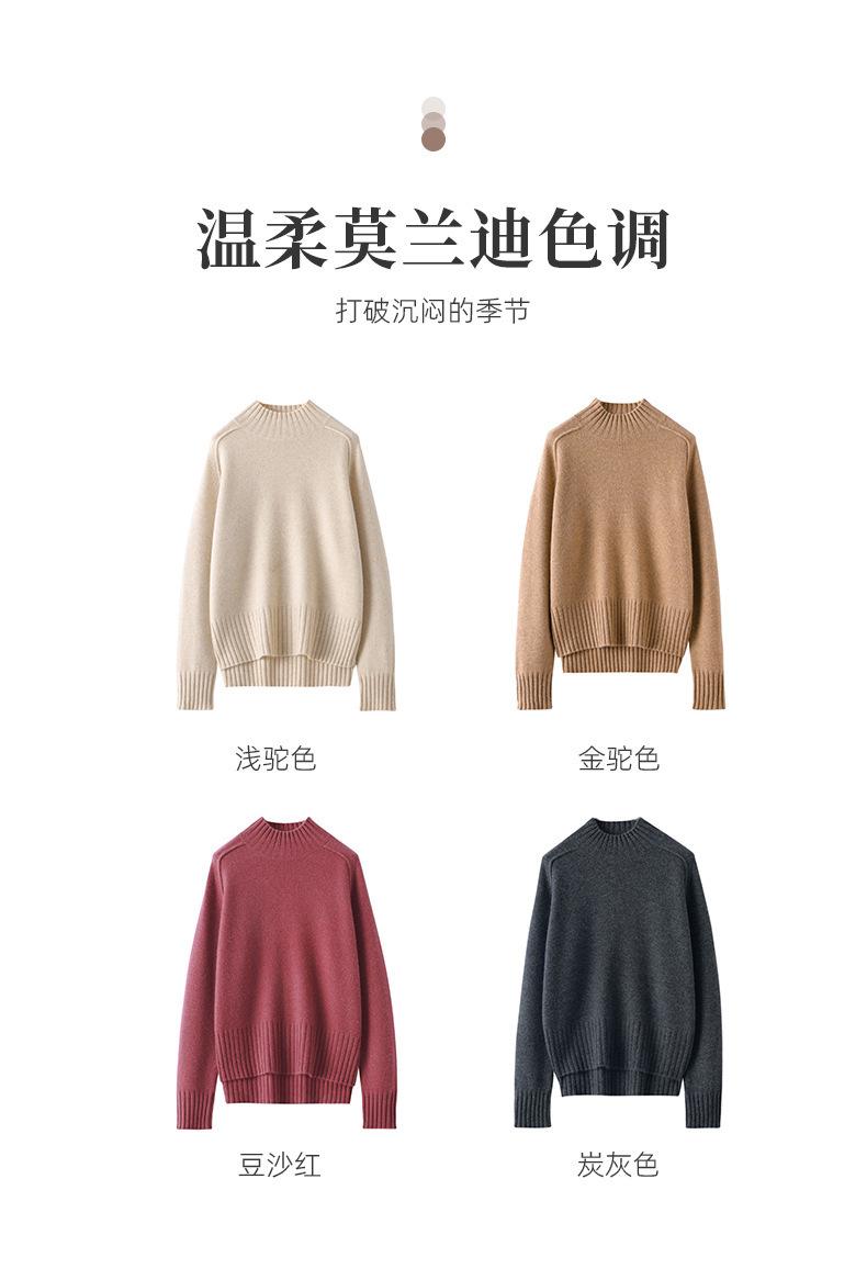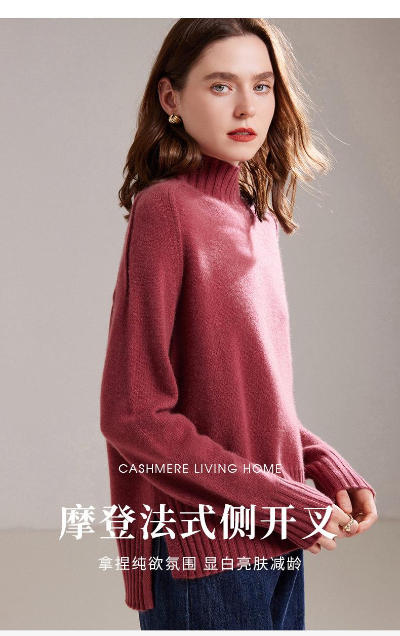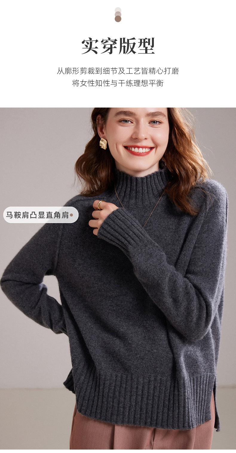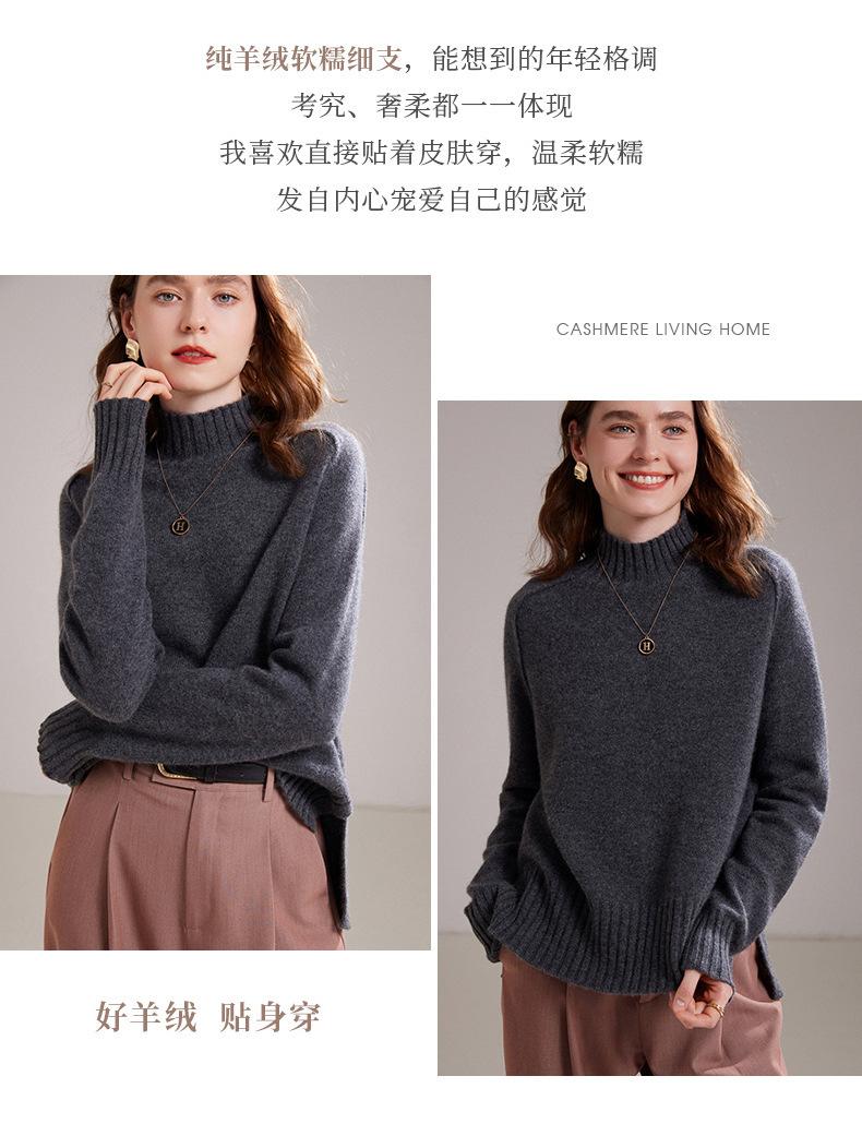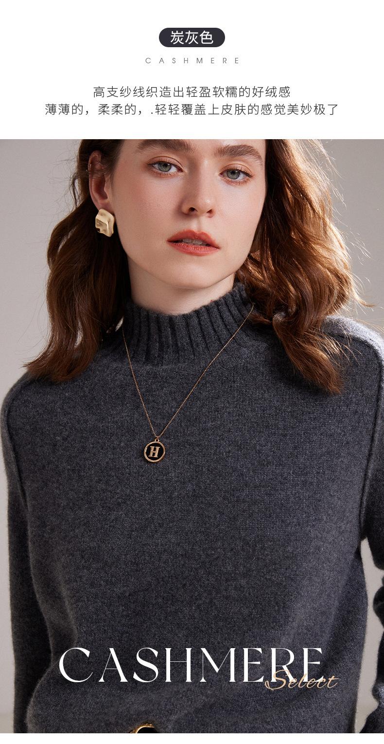 Suéter de cachemira para mujer, jersey de cuello alto medio, otoño e invierno, nuevo jersey de cachemira pura, jersey corto de punto de color liso.