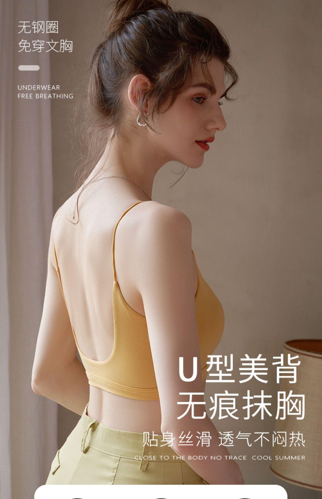 Hermosa Ropa Interior Trasera para Mujer Pecho Pequeño Push-up Envoltura de Pecho 2022 Nuevo Estilo Tirante Delgado en U Top Tubo Chaleco Anti-luz Sostén