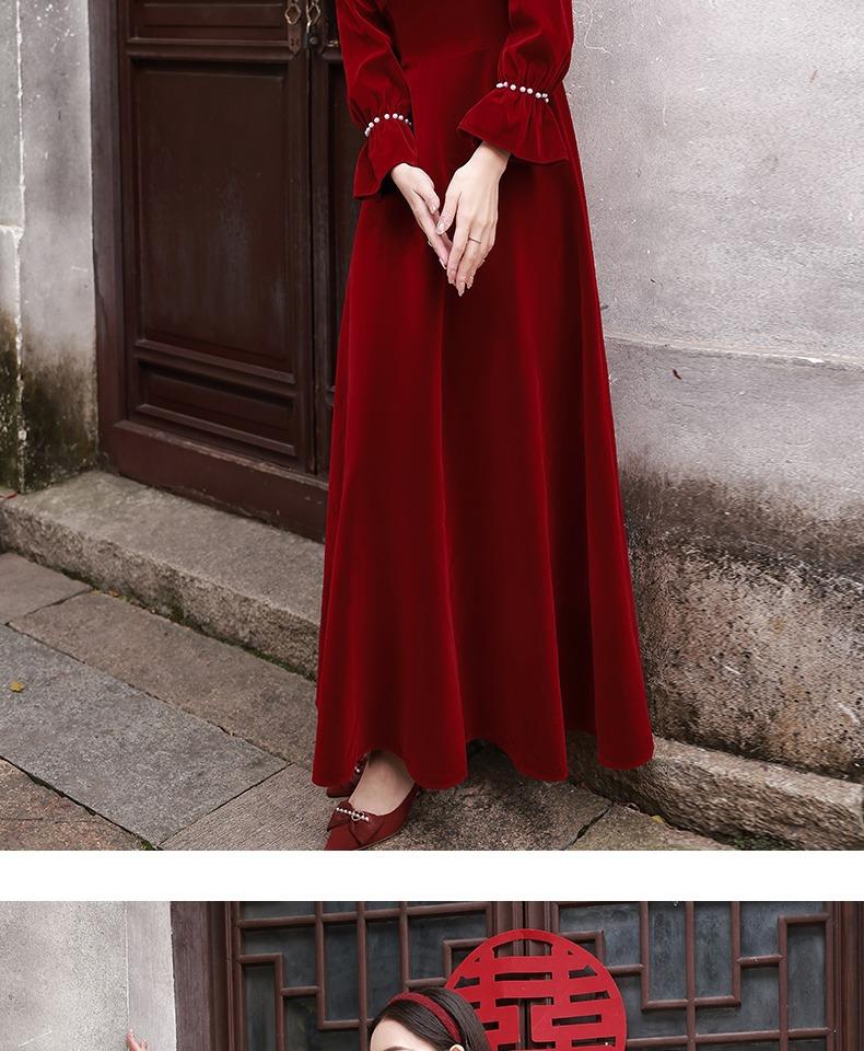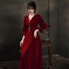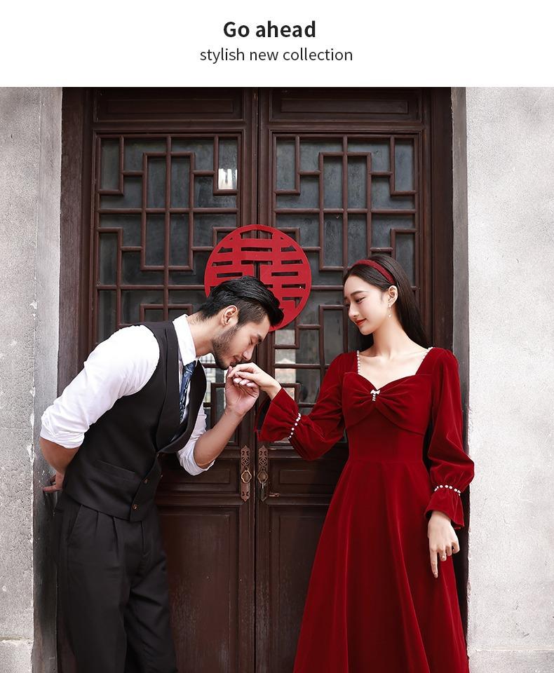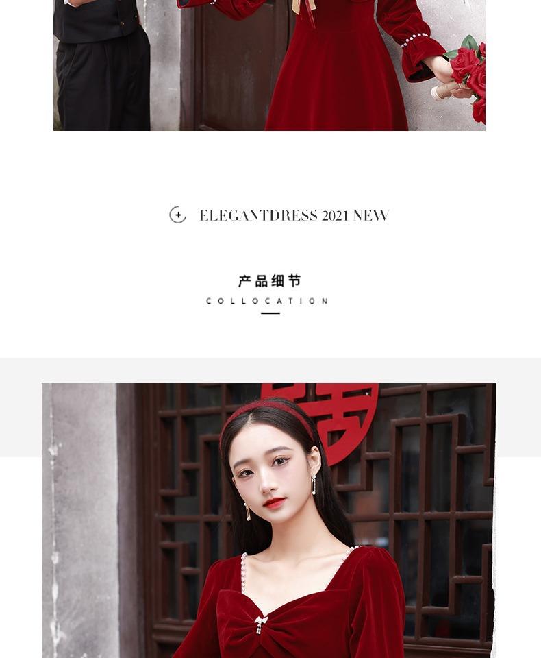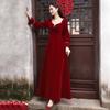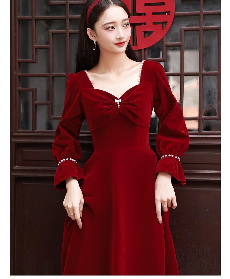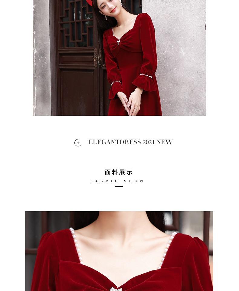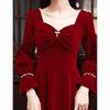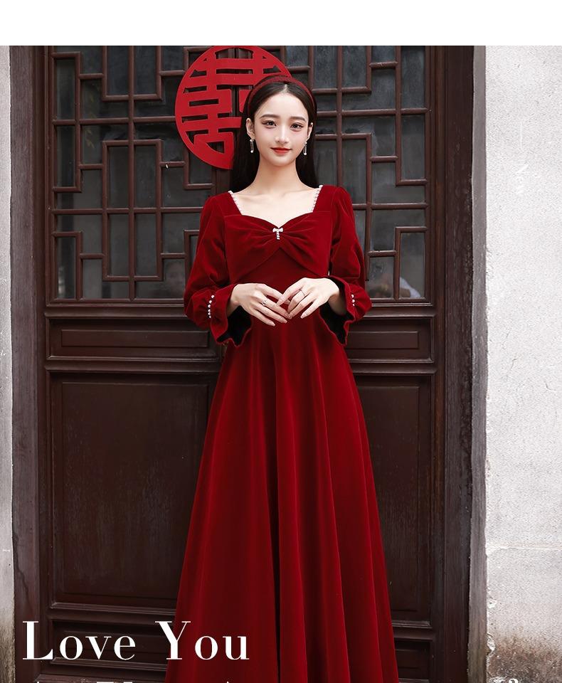 Vestido de Brindis de Terciopelo de Manga Larga para Novia 2025 Nuevo Boda Compromiso Regreso a Casa Agradecimiento Banquete Vestido Borgoña Falda Línea A