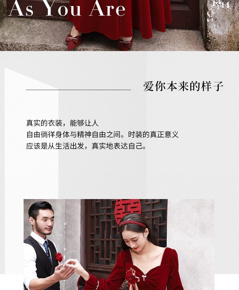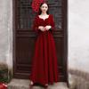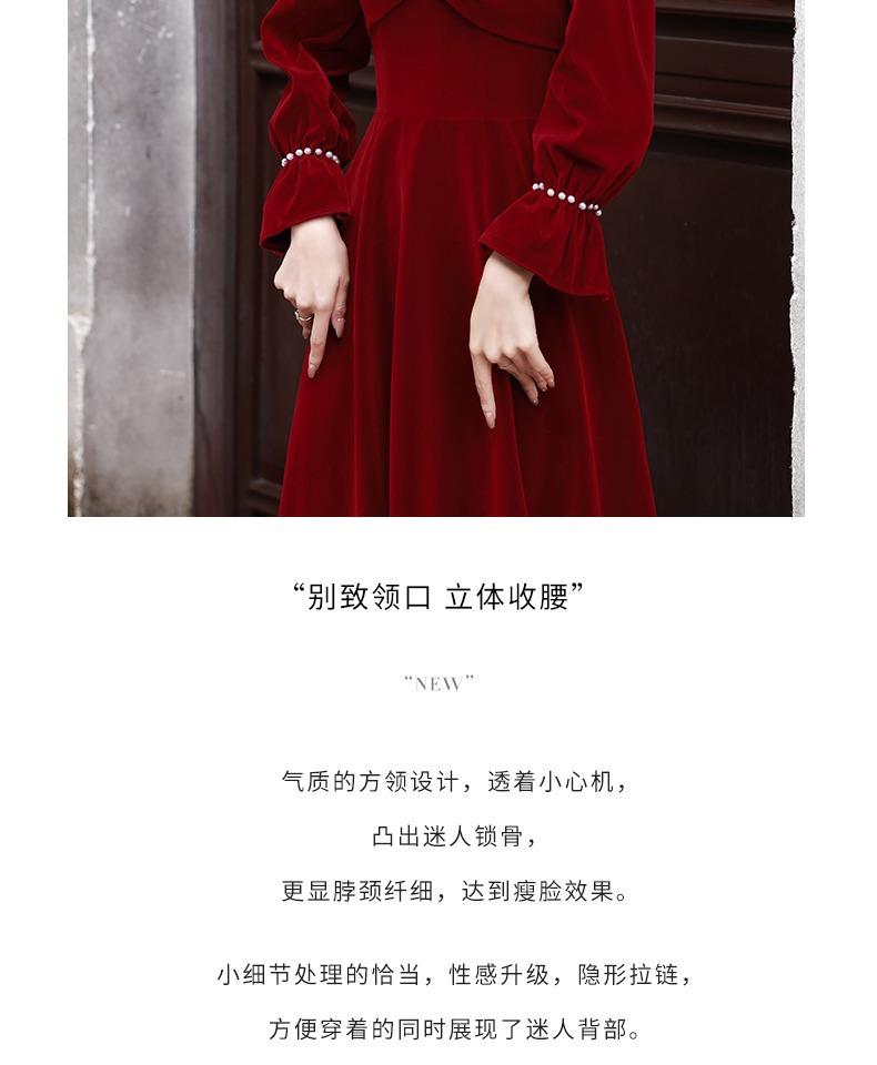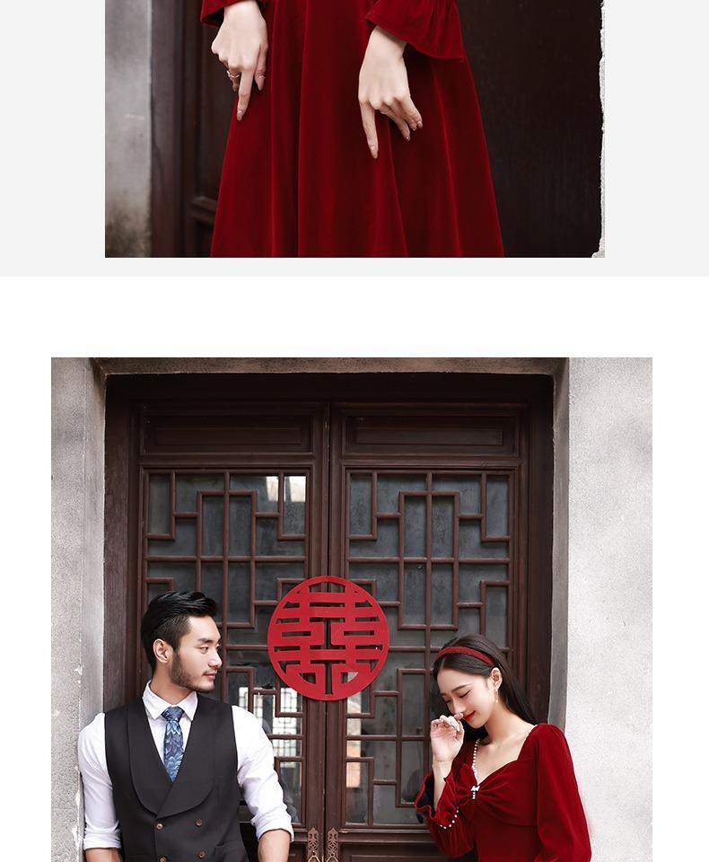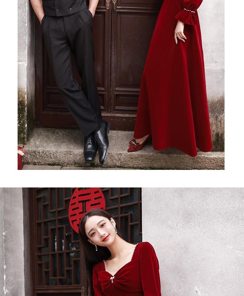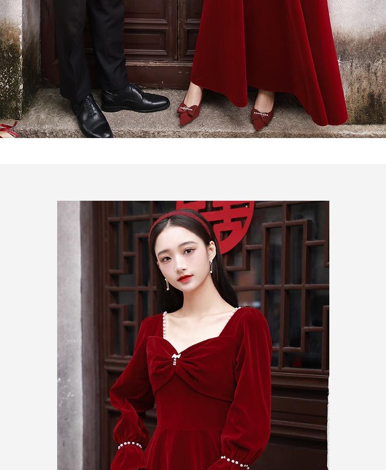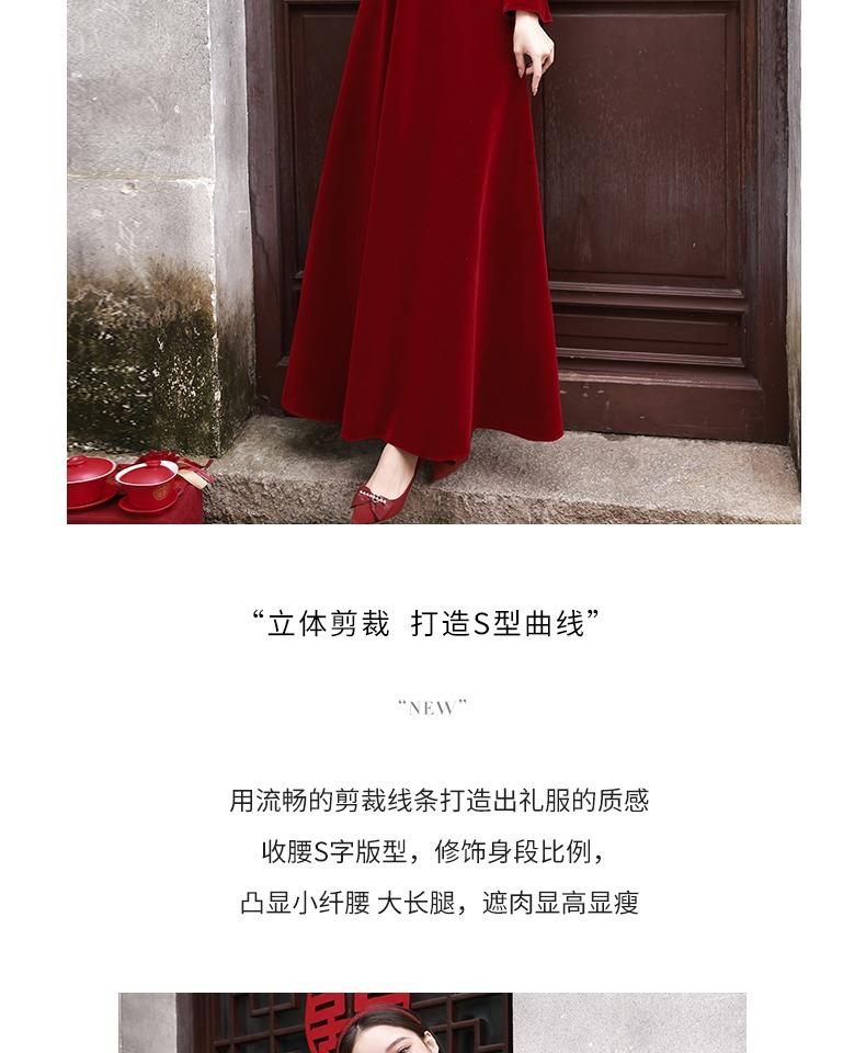 Vestido de Brindis de Terciopelo de Manga Larga para Novia 2025 Nuevo Boda Compromiso Regreso a Casa Agradecimiento Banquete Vestido Borgoña Falda Línea A