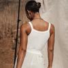 Camisola de punto con hilo estilo europeo y americano para mujer, top corto ajustado con ombligo al descubierto, chaleco interior ajustado con cuello en U.