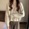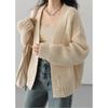 Otoño e invierno 2023, nuevo abrigo de punto suelto de estilo perezoso, estilo coreano, cuello en V, suéter de punto de color sólido, cárdigan, top de mujer