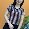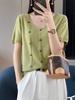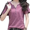 Camiseta de algodón flameado de verano 2024, nueva camiseta de manga corta de algodón, holgada, de talla grande, con cuello en V, para mujer