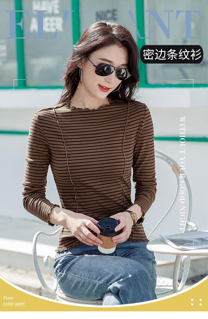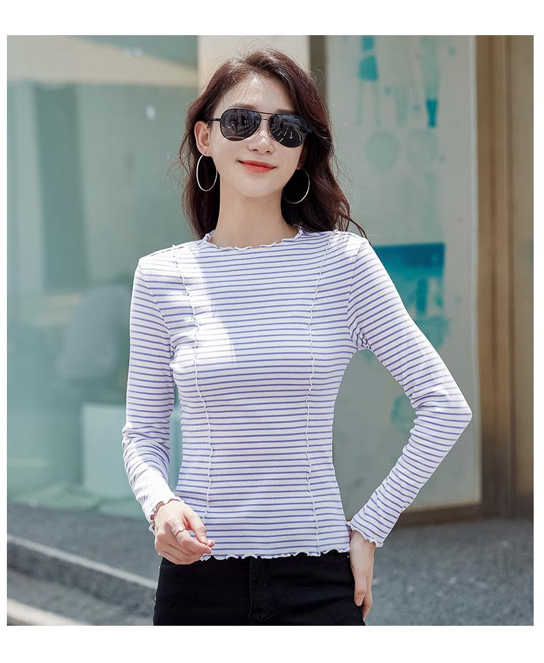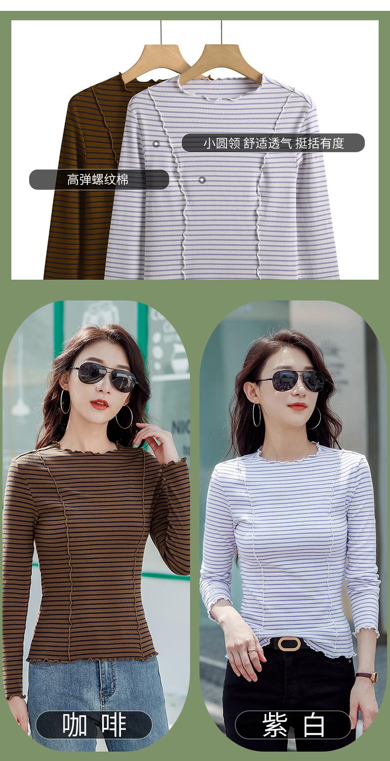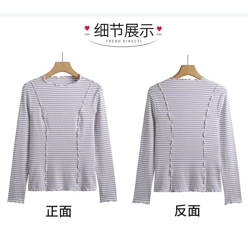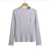 2025 Camiseta Base de Manga Larga a Rayas Hilo Nuevo Top Slim Moda Marea Borde Tenso Moda Camiseta 188-1