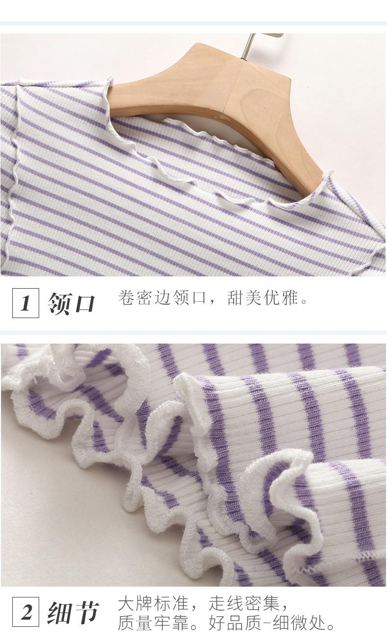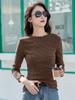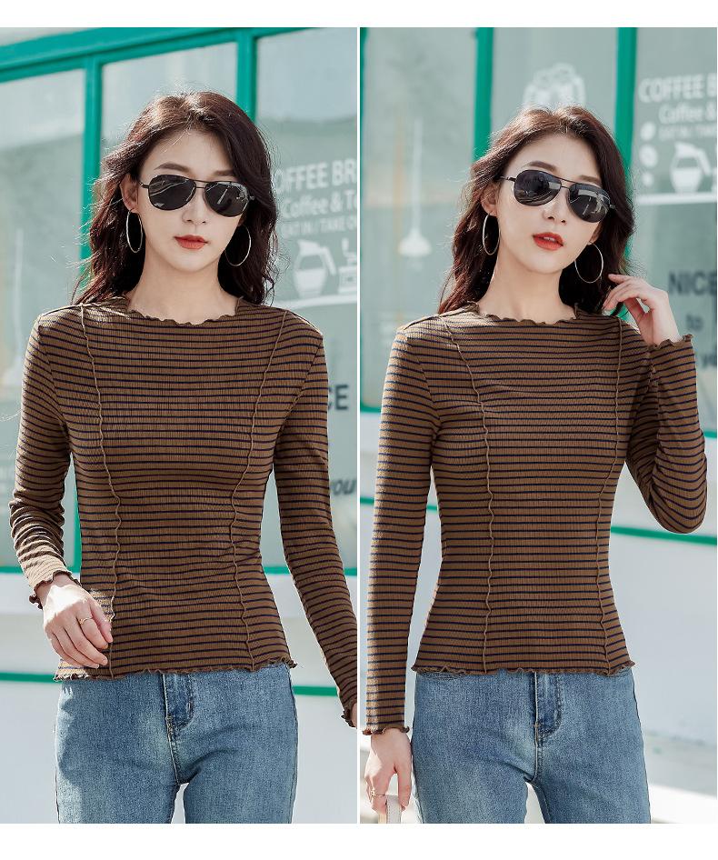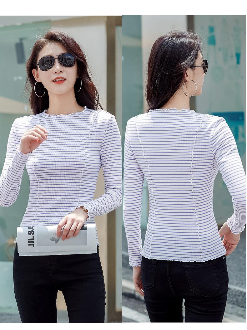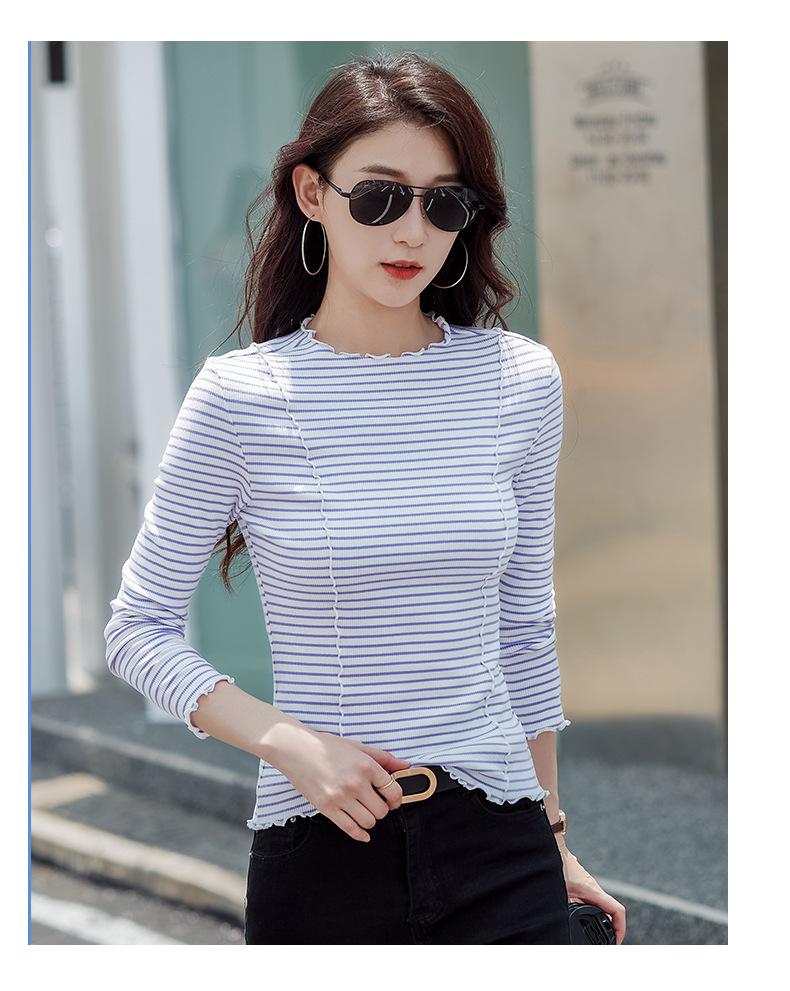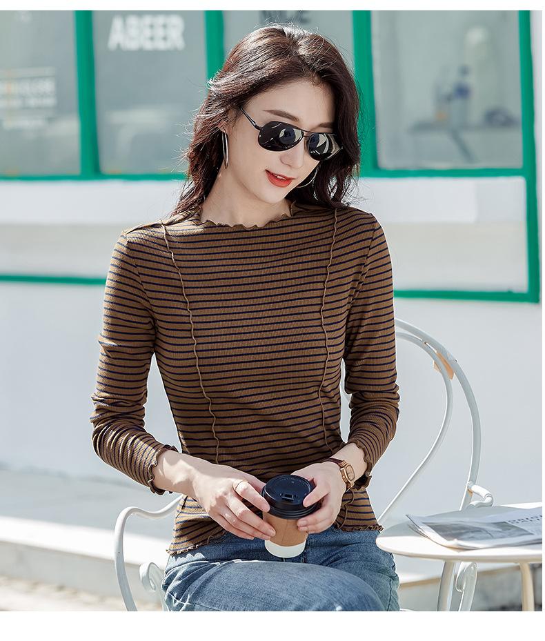 2025 Camiseta Base de Manga Larga a Rayas Hilo Nuevo Top Slim Moda Marea Borde Tenso Moda Camiseta 188-1