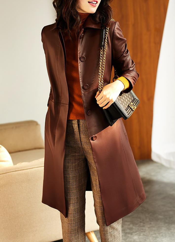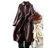 Chaqueta de Cuero Genuino de Piel de Cabra para Mujer de Largo Medio de Haining, Chaqueta Cortavientos Elegante de Alta Gama, Chaqueta de Cuero, Cuero Genuino