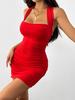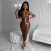 Ins Estilo Caliente 2024 Europeo y Americano Sexy Cintura Adelgazante Look Tirante Halter Cubre Caderas Vestido Largo Rojo Descubierto de Espalda para Mujer