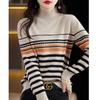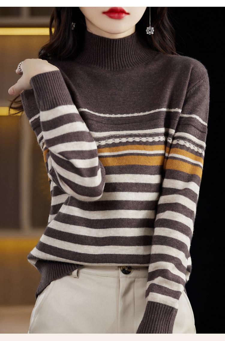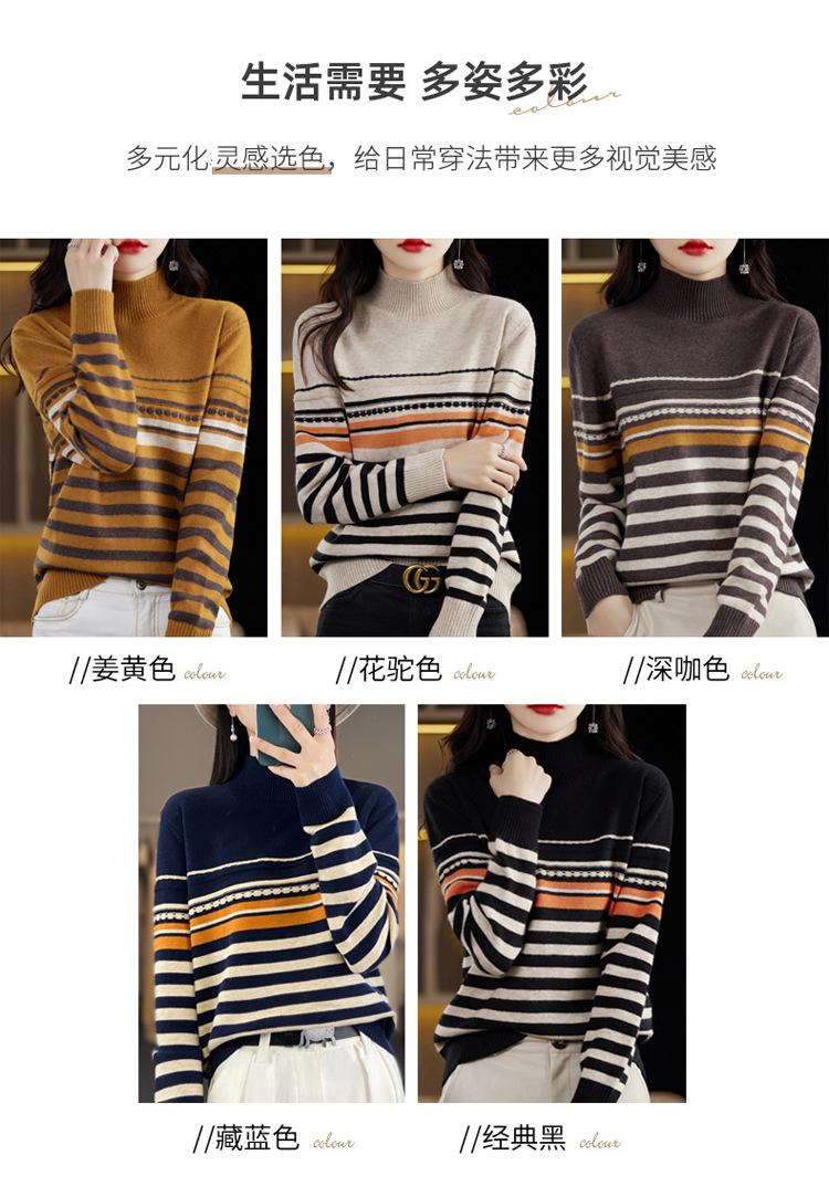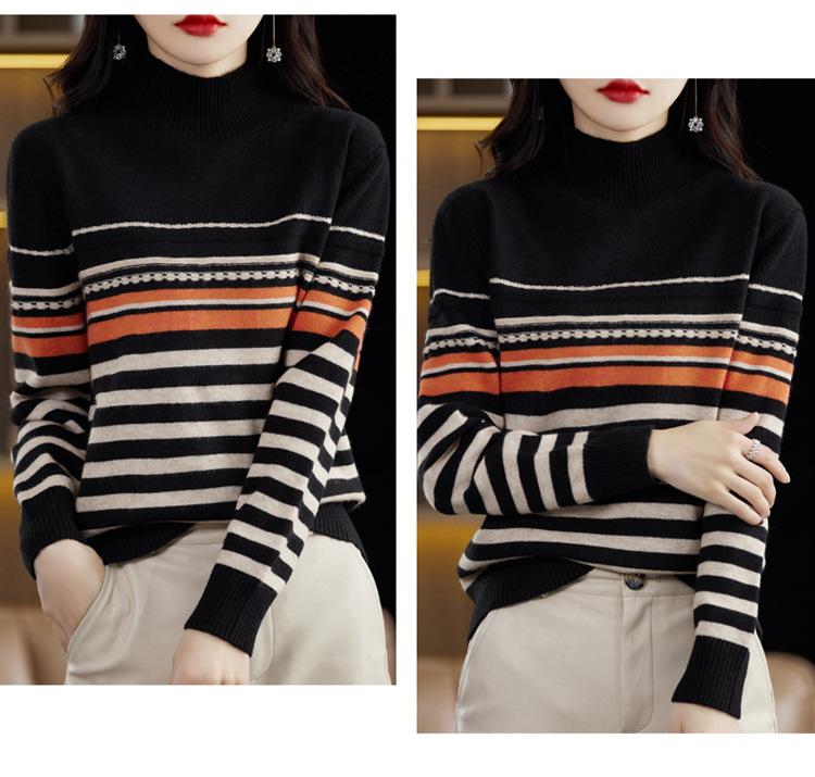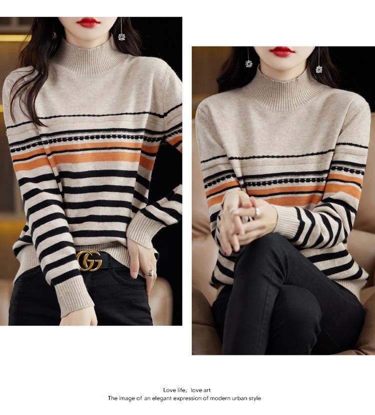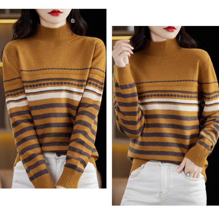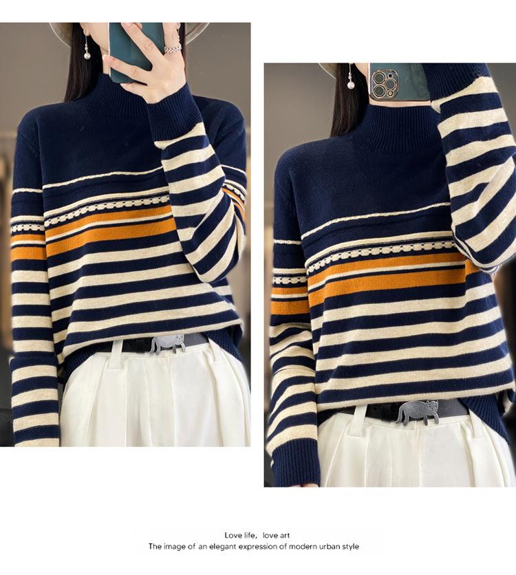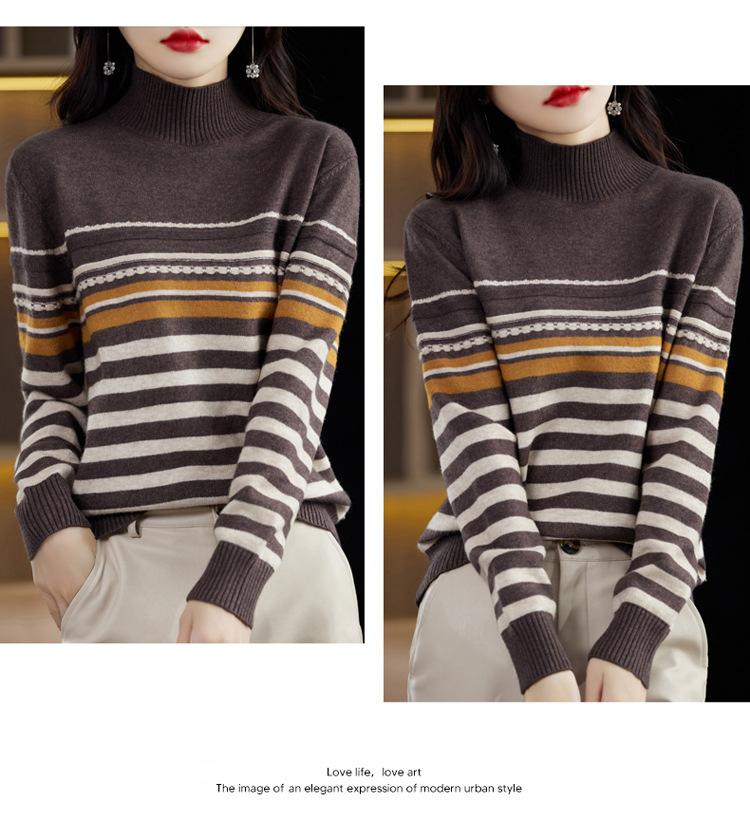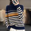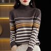 Suéter de cuello alto a rayas de otoño e invierno, suéter de fondo a juego con colores, suéter ajustado de estilo coreano de manga larga, ropa interior a juego con colores para mujer