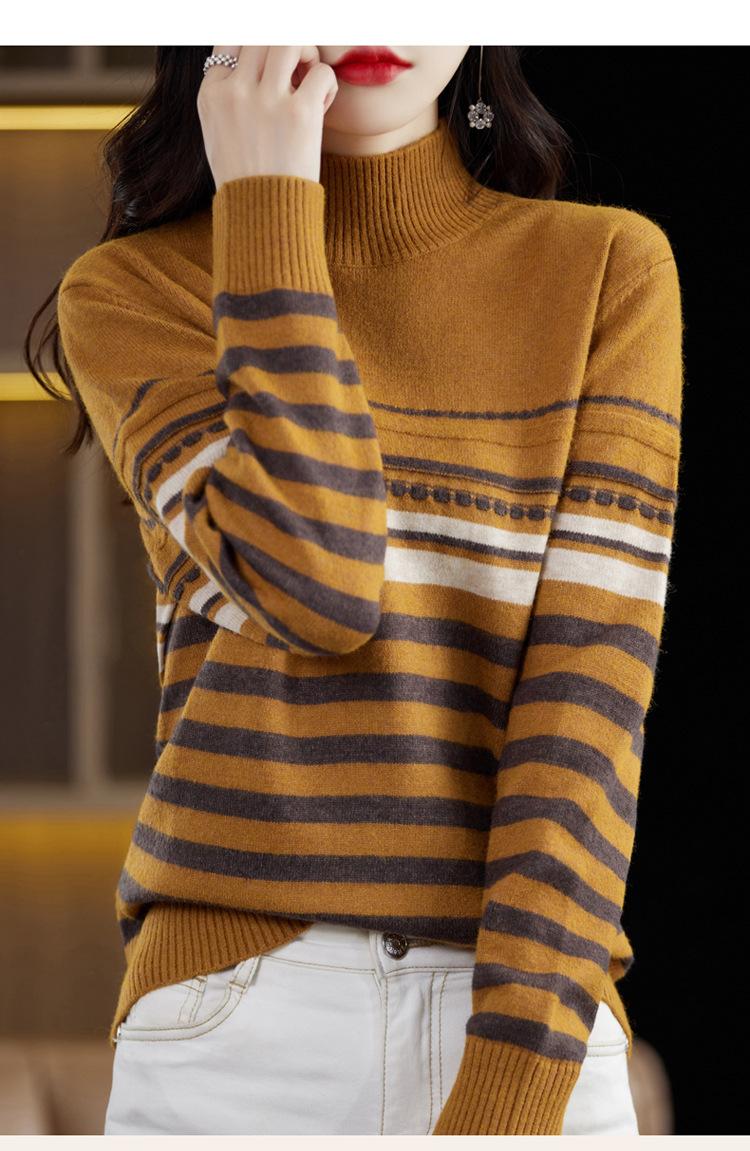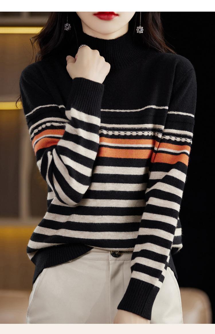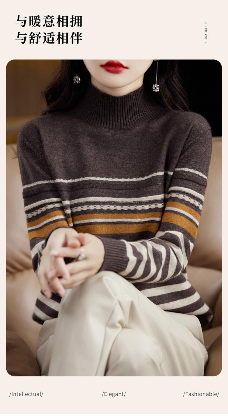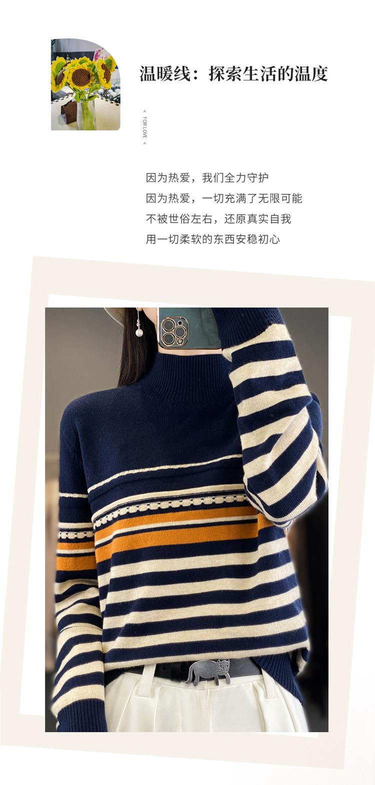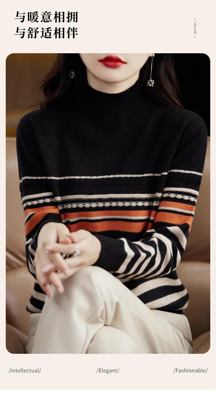 Suéter de cuello alto a rayas de otoño e invierno, suéter de fondo a juego con colores, suéter ajustado de estilo coreano de manga larga, ropa interior a juego con colores para mujer