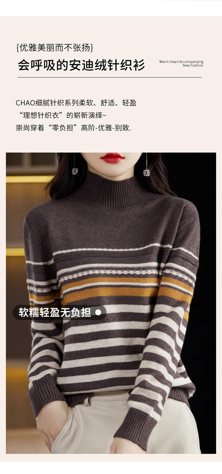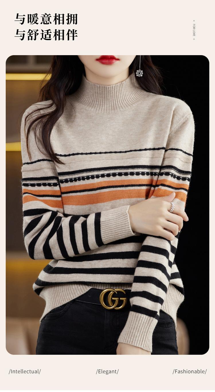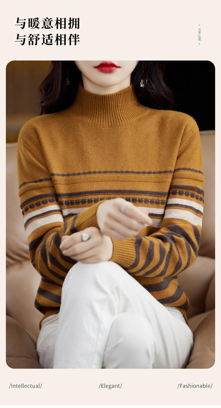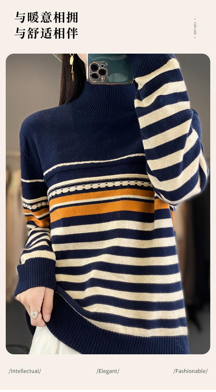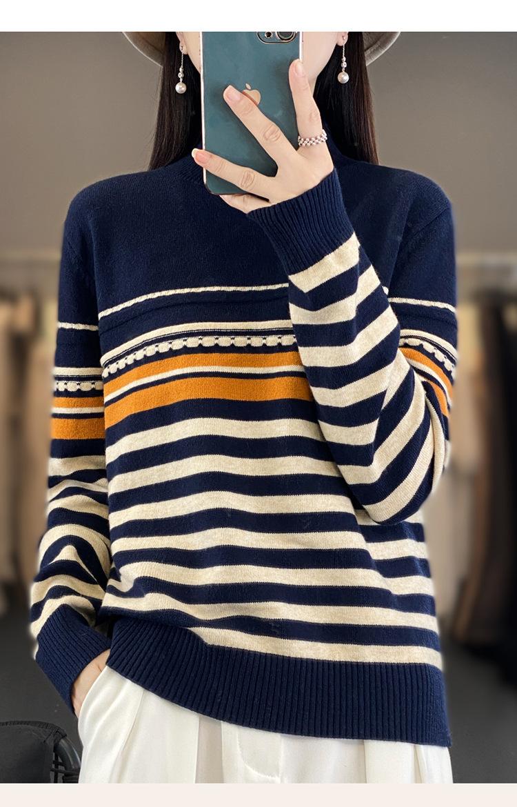 Suéter de cuello alto a rayas de otoño e invierno, suéter de fondo a juego con colores, suéter ajustado de estilo coreano de manga larga, ropa interior a juego con colores para mujer