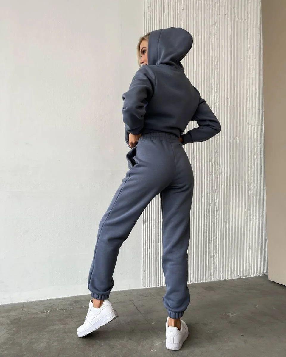 Traje de Sudadera y Pantalón de Terciopelo de Manga Larga con Capucha y Cremallera para Mujer, Nuevo Otoño e Invierno, Transfronterizo Europeo y Americano, Amazon