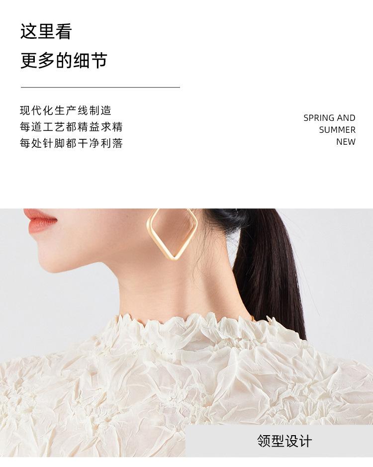 | Blusas plisadas para mujer, Miyake Primavera y Otoño, color sólido, mangas de nueve puntos, color sólido, versátil, cuello alto pequeño, temperamento, camiseta de fondo para mujer |
