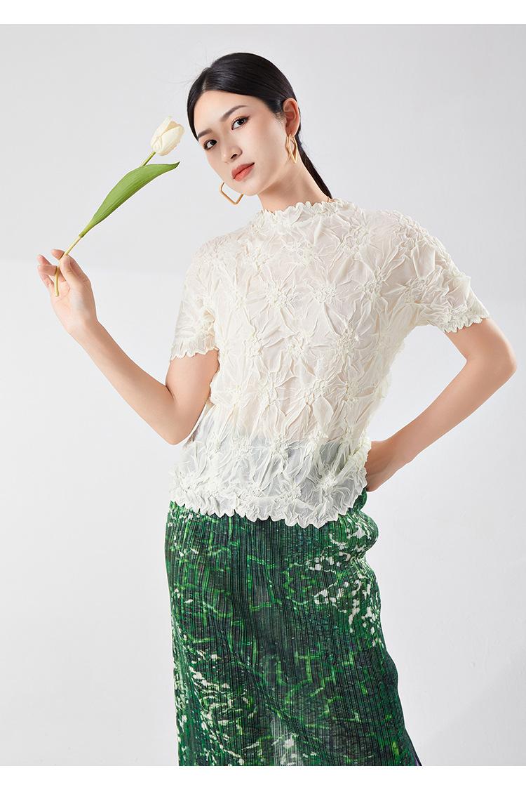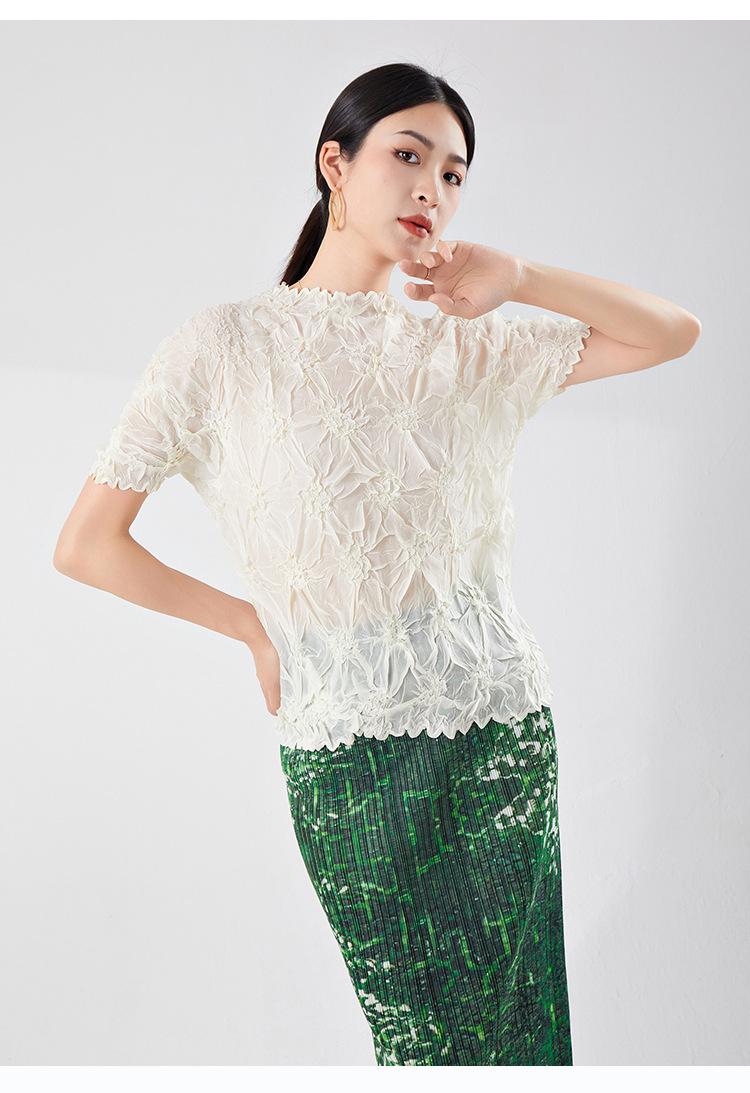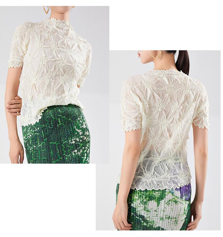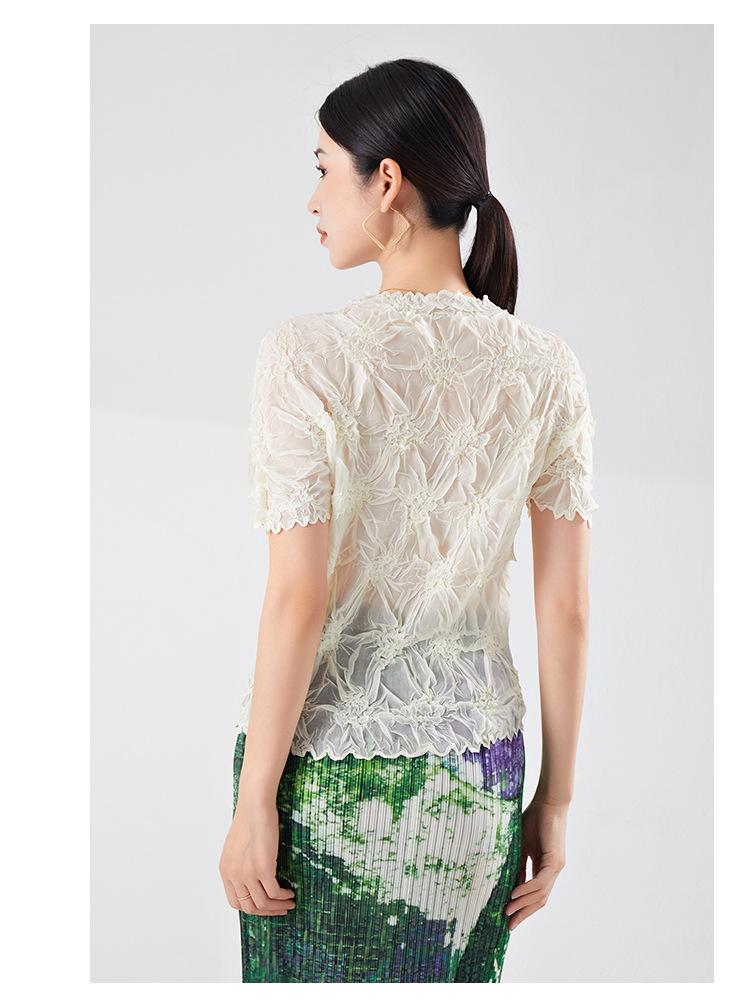 | Nueva camiseta de verano Miyake para mujer, moderna y versátil, con cuello en V holgado, plisado, ajustado, ropa plisada para mujer |