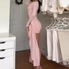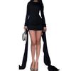 Otoño 2024 nuevo europeo y americano transfronterizo Amazon transfronterizo color sólido cuello redondo plisado diseño irregular falda a la cadera