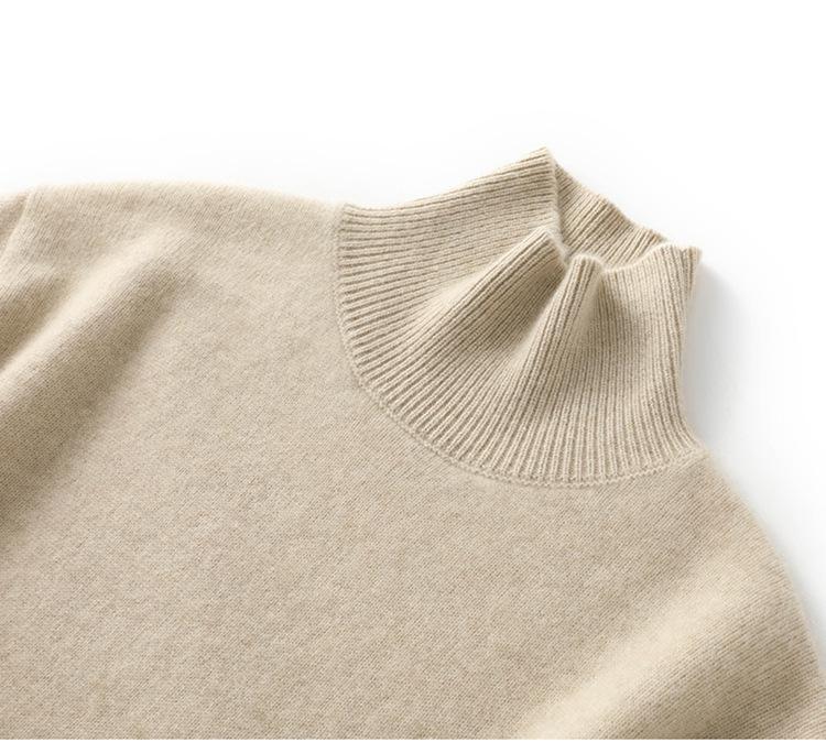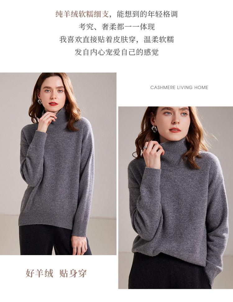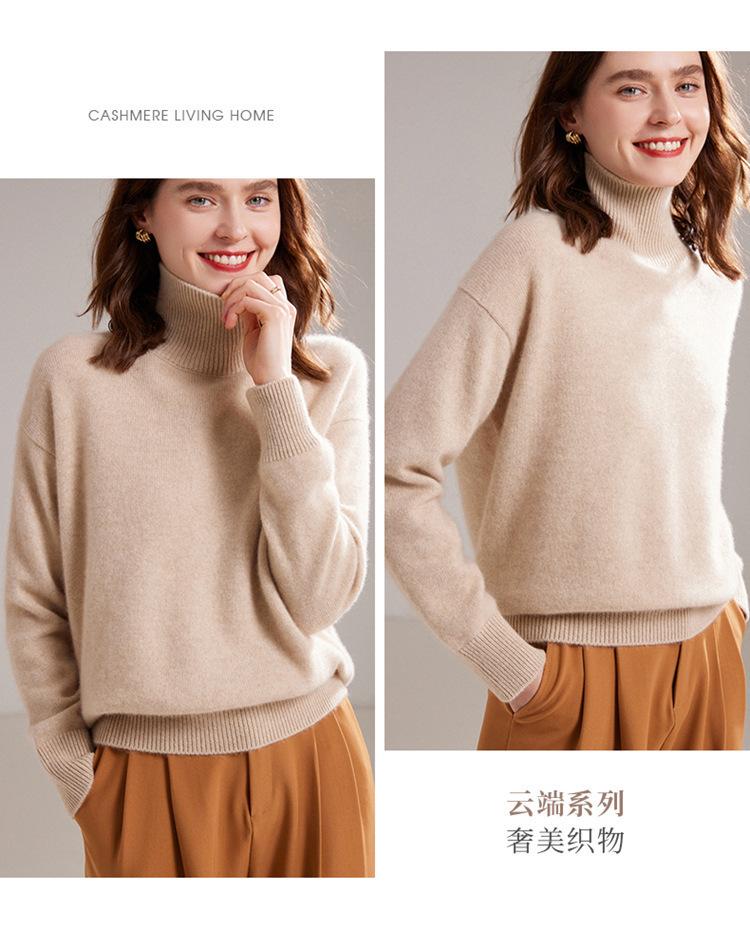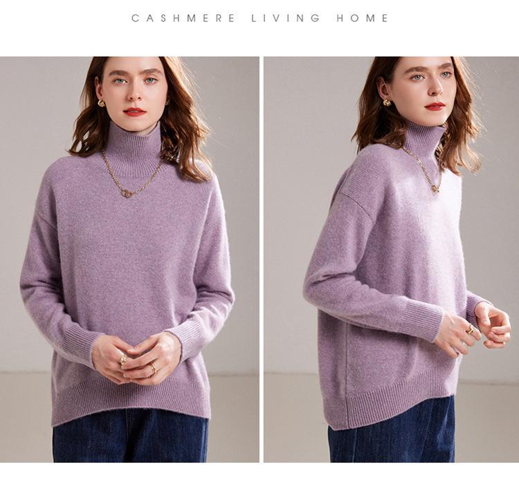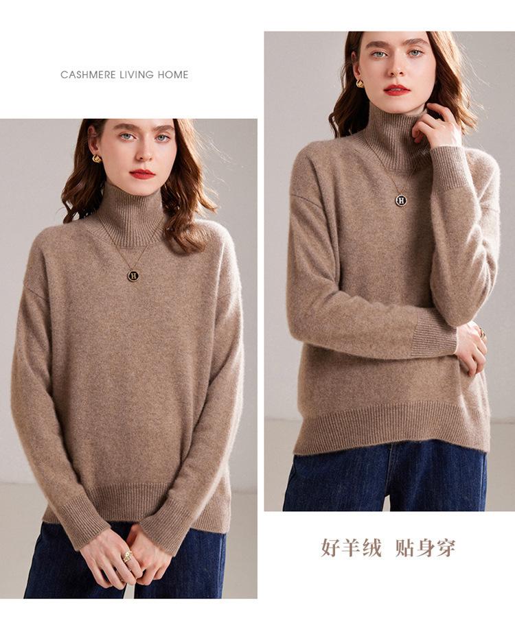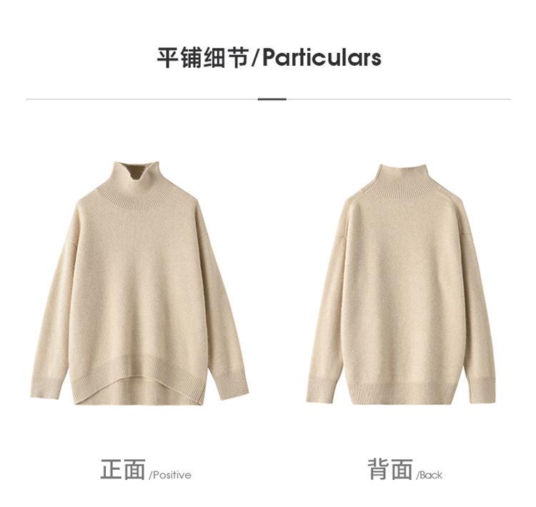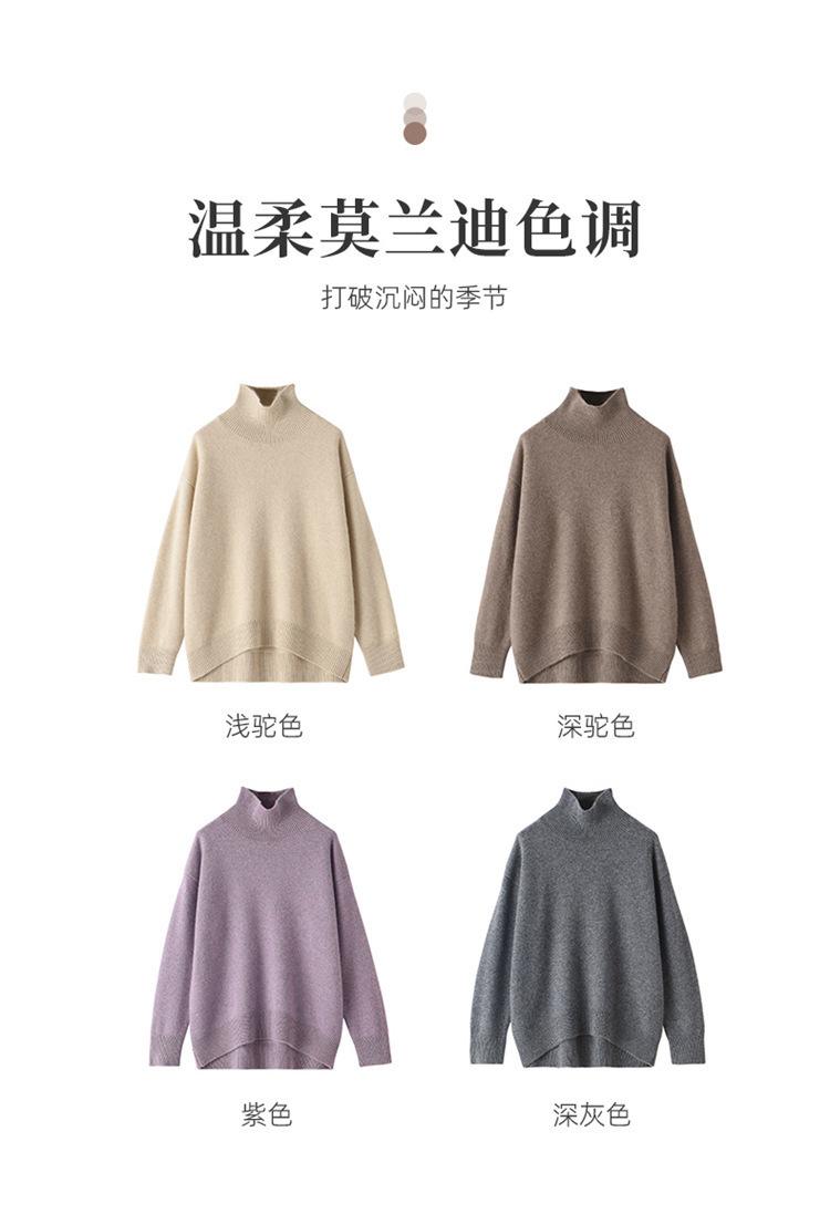 Nuevo Otoño e Invierno Cuello Alto de Cachemira Color Puro Camiseta Base Holgada Talla Grande Cálido Suéter de Punto para Mujer Todo Cachemira