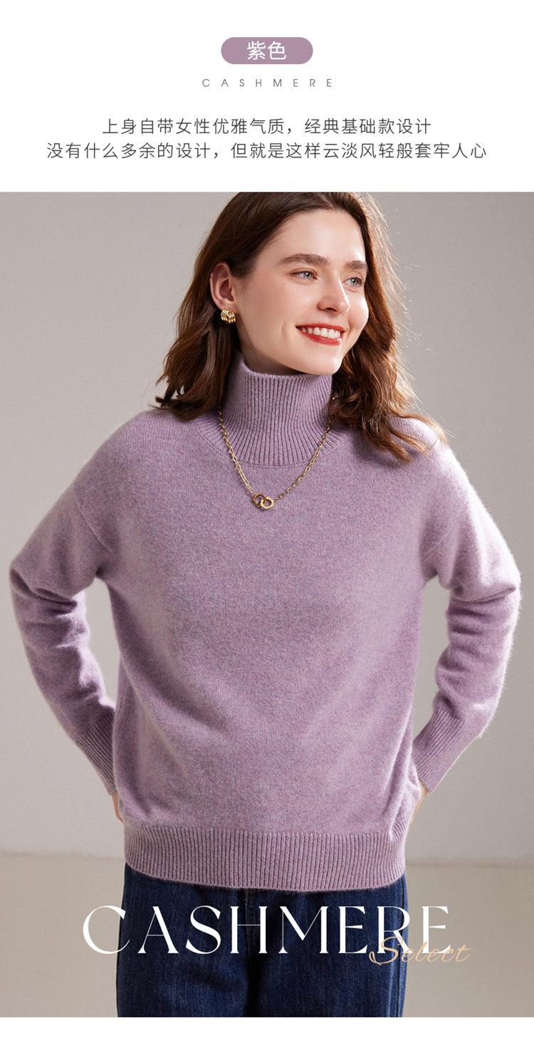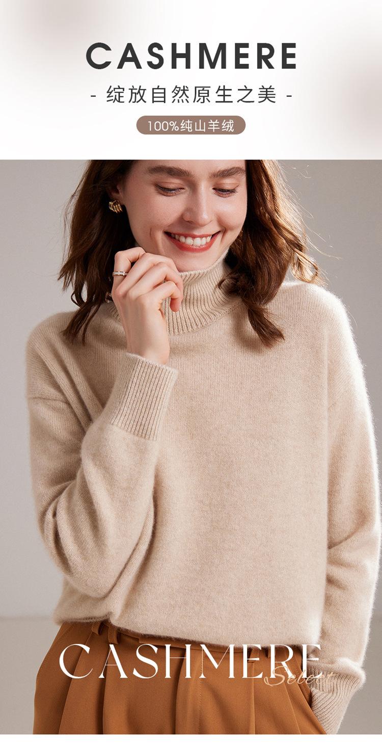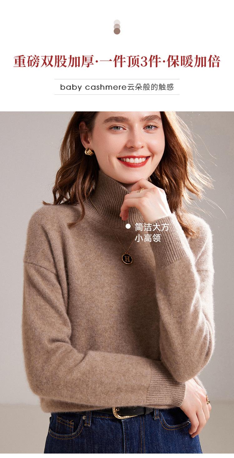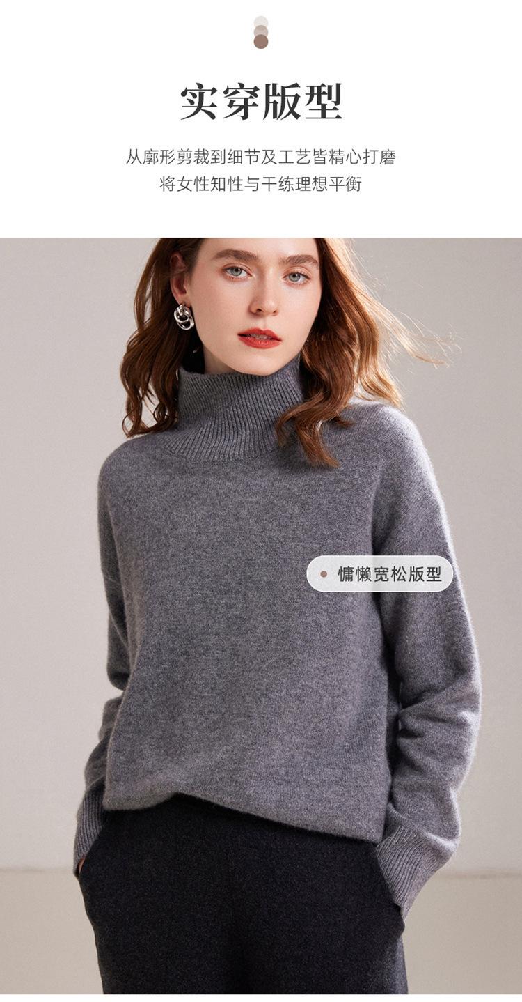 Nuevo Otoño e Invierno Cuello Alto de Cachemira Color Puro Camiseta Base Holgada Talla Grande Cálido Suéter de Punto para Mujer Todo Cachemira