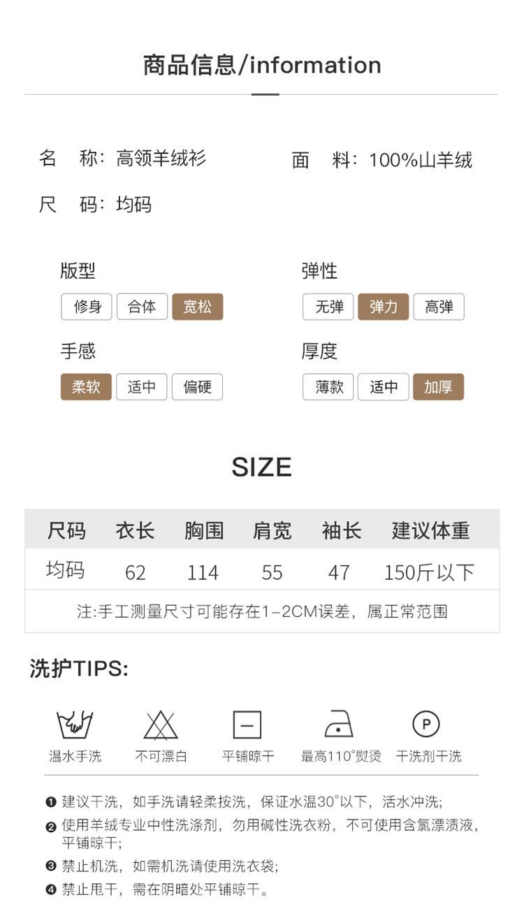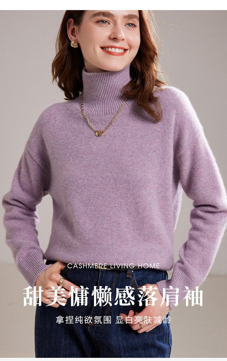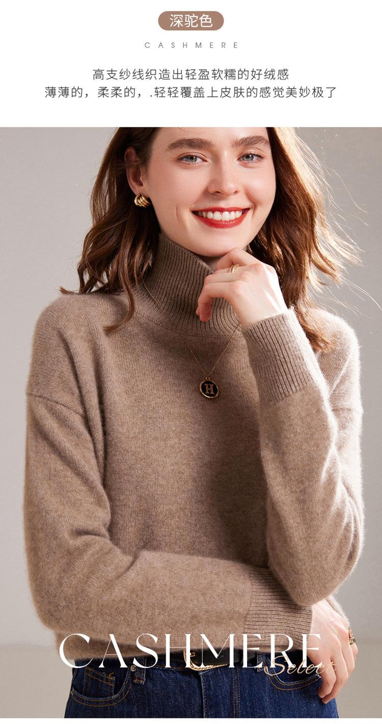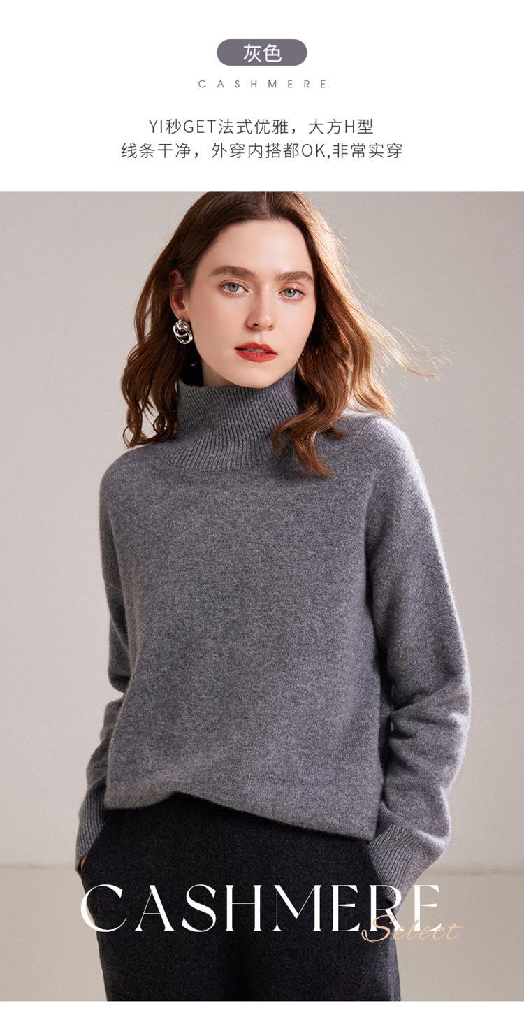 Nuevo Otoño e Invierno Cuello Alto de Cachemira Color Puro Camiseta Base Holgada Talla Grande Cálido Suéter de Punto para Mujer Todo Cachemira