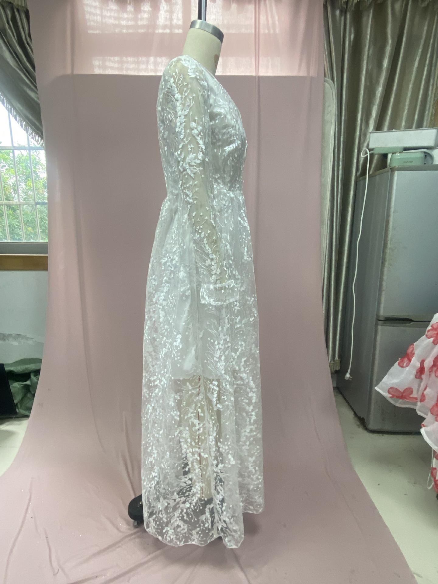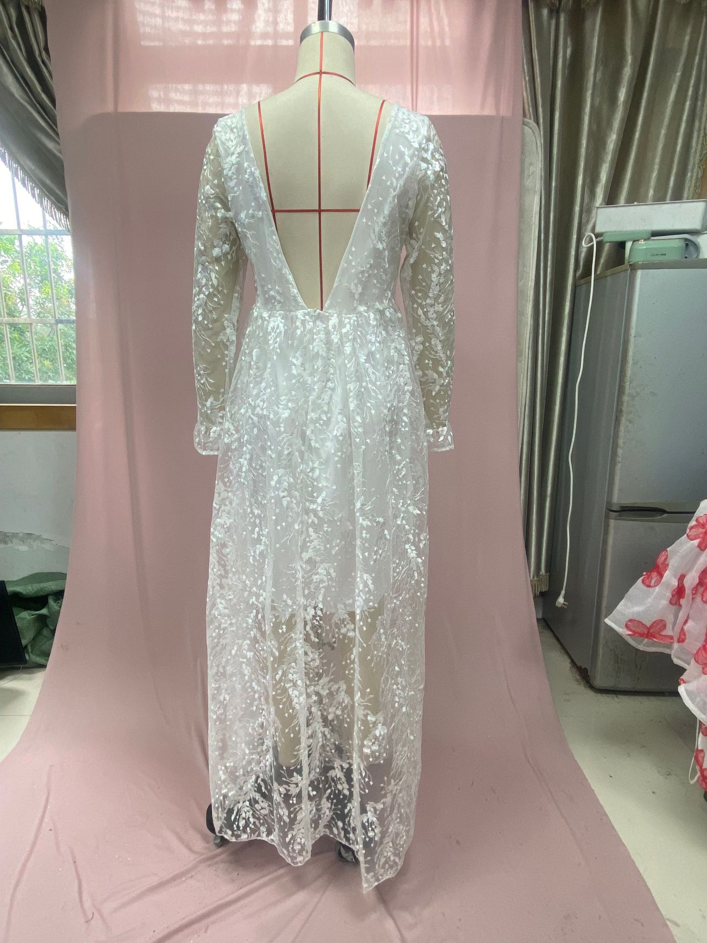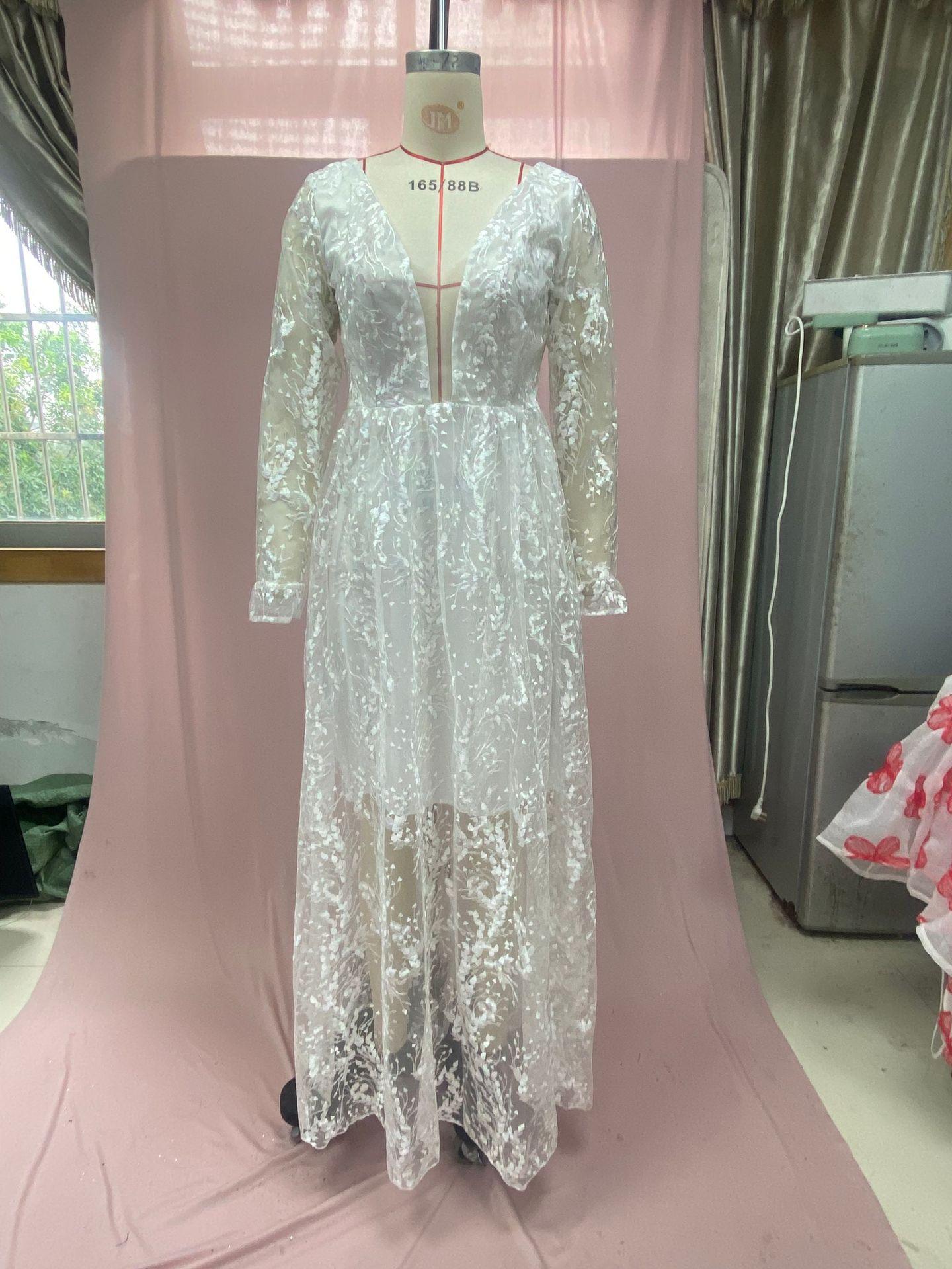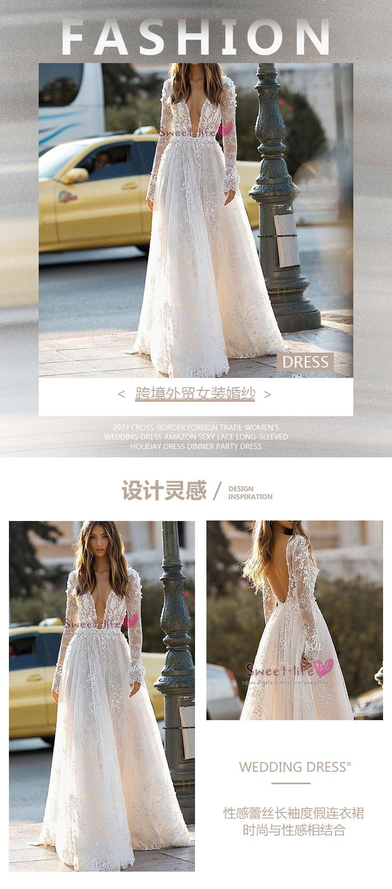 Vestido de Novia para Mujer de Exportación Transfronteriza 2025 Amazon Sexy Encaje Manga Larga Vestido de Vacaciones Vestido para Fiesta de Cena