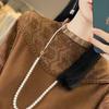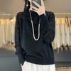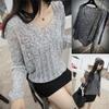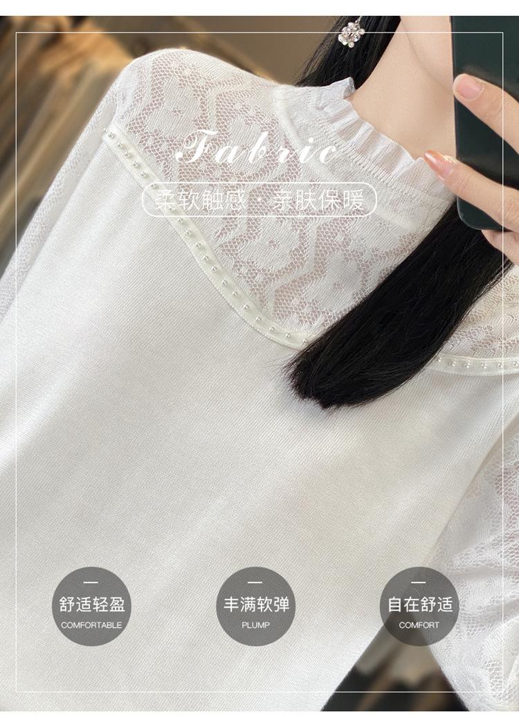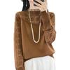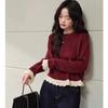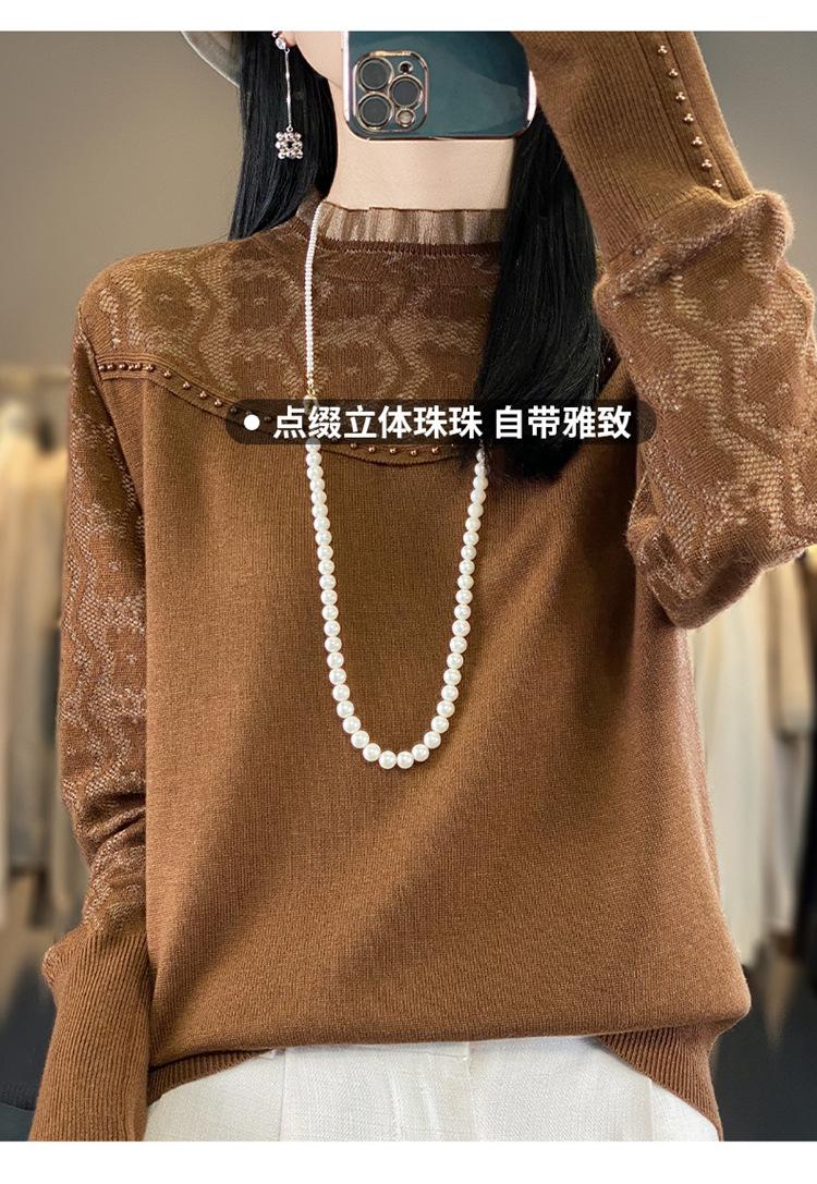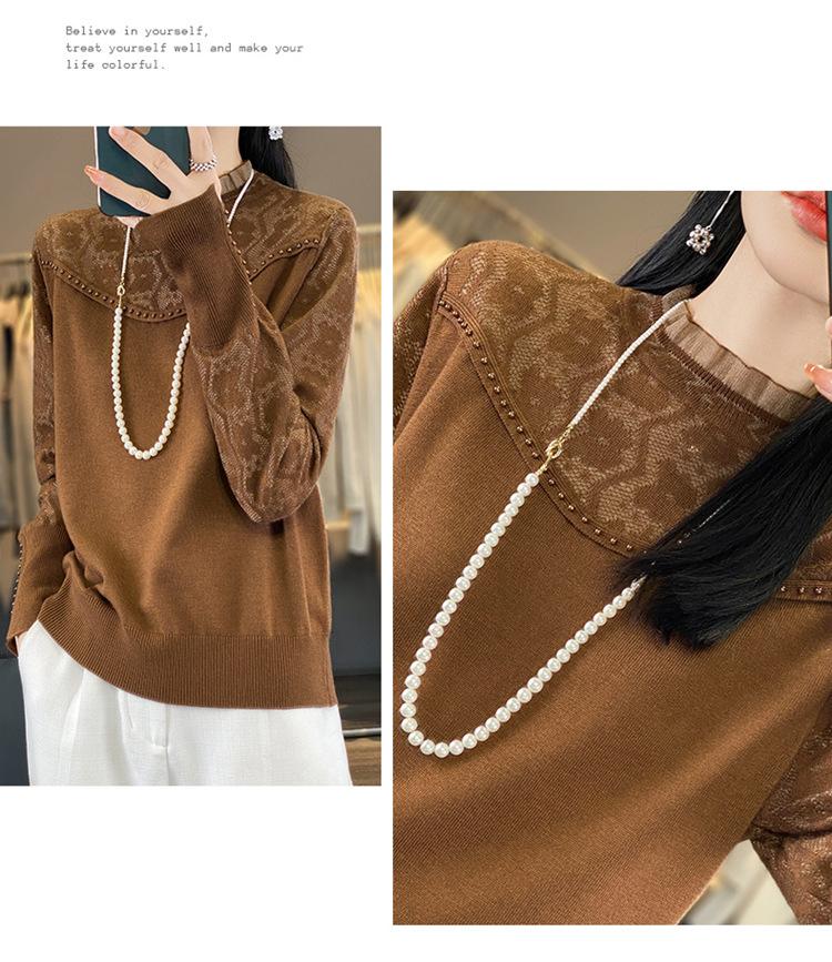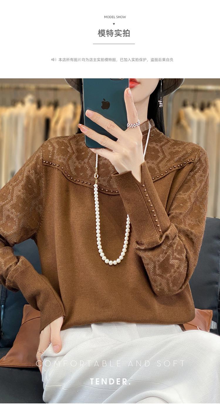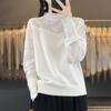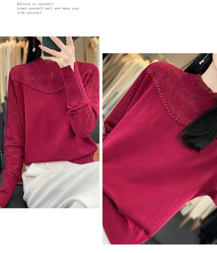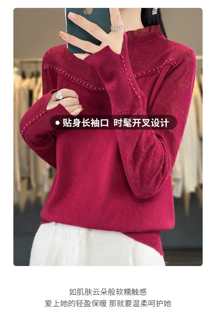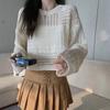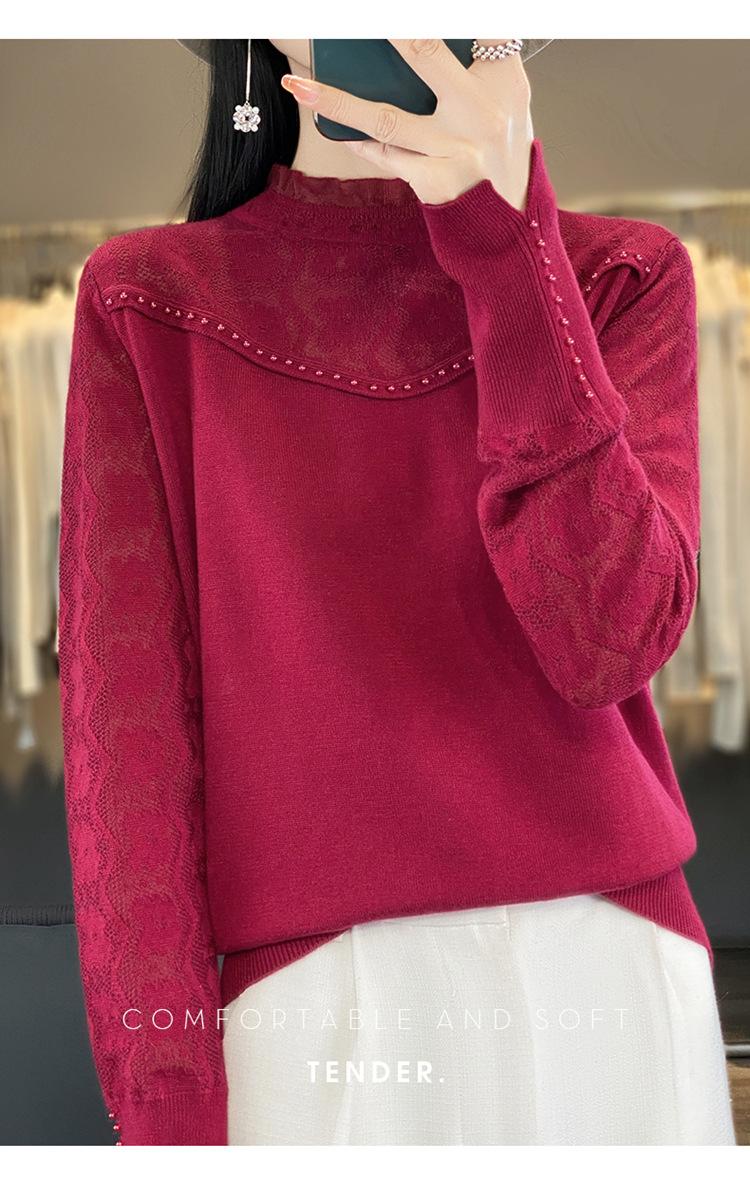 Suéter con cuello de oreja para mujer, cárdigan de punto calado con encaje, cuello medio alto, color liso, suelto, tipo camisa