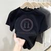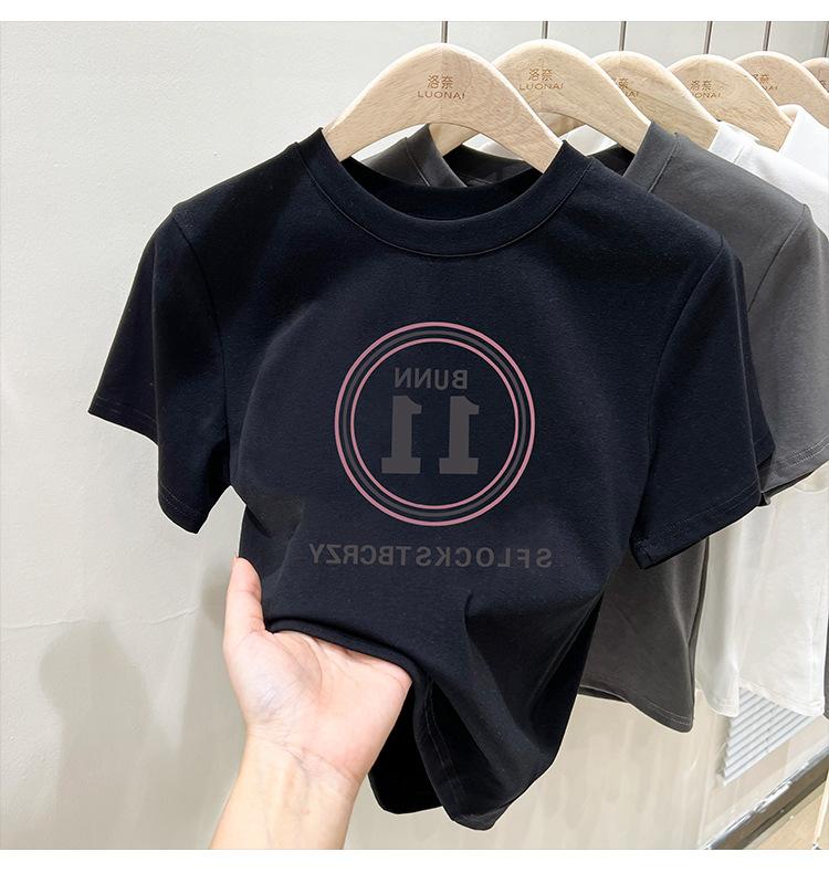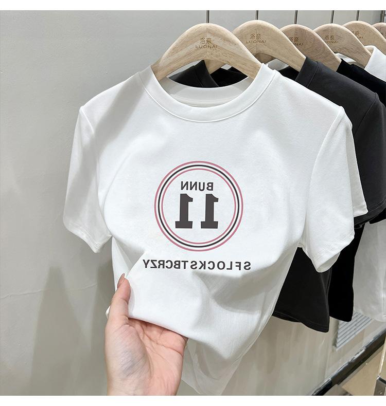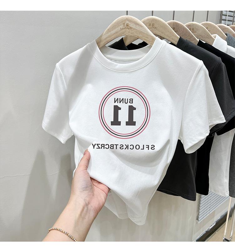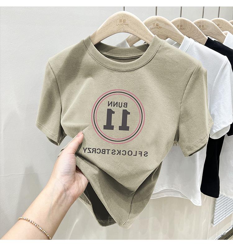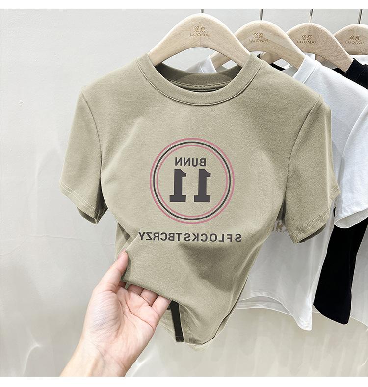 Camiseta de manga corta con hombros descubiertos y estampado retro de estilo americano para mujer, diseño de verano, top corto y moderno.