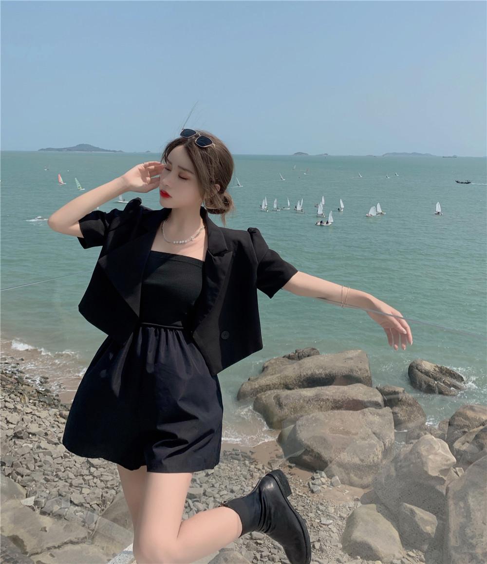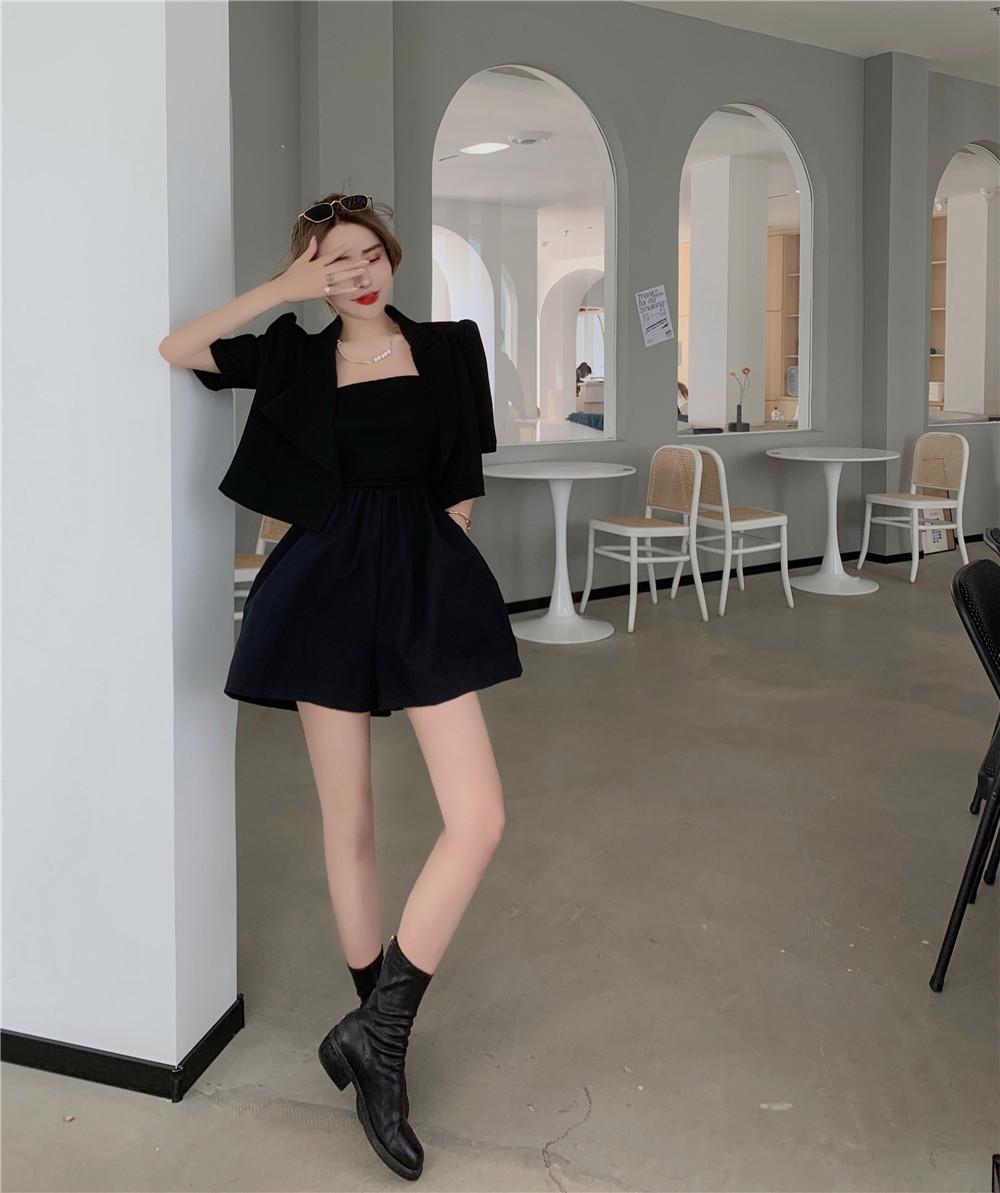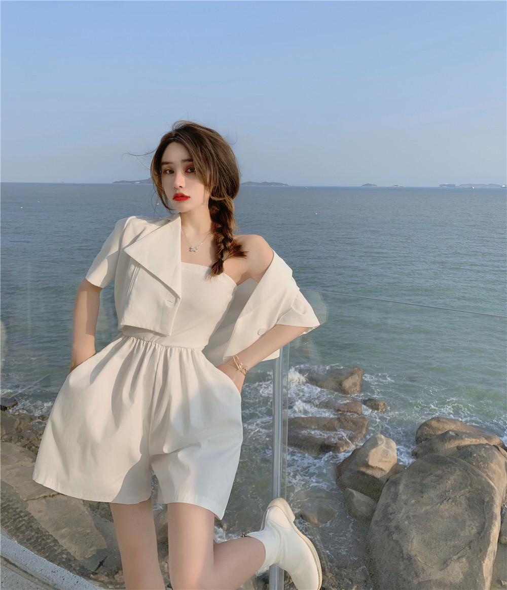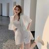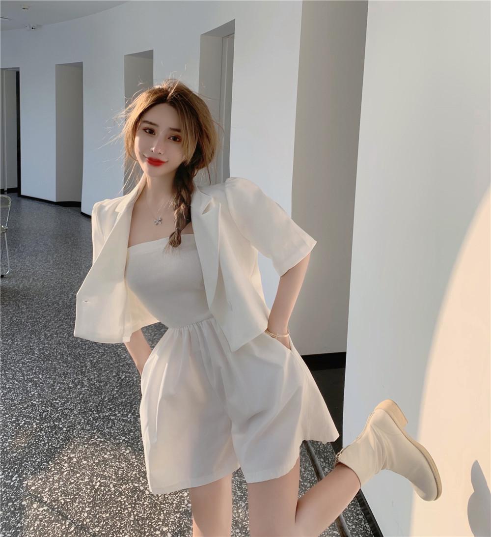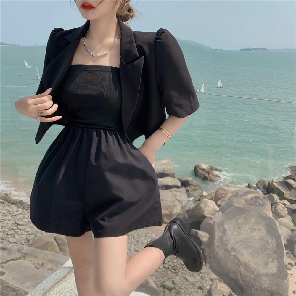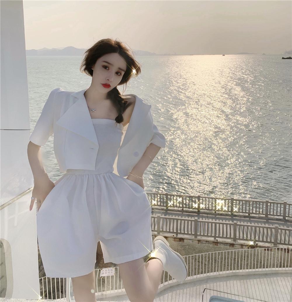 Traje de Pantalón Corto para Mujer Verano Transfronterizo Nuevo Temperamento de Alta Gama Chaqueta Pequeña de Manga Corta Pantalones de Pierna Ancha Conjunto de Dos Piezas
