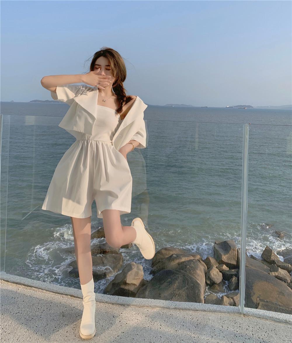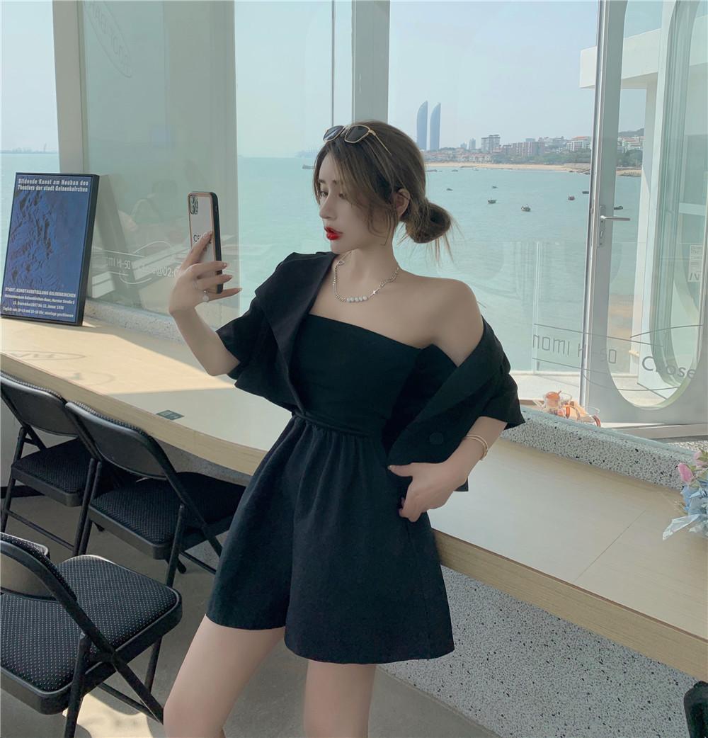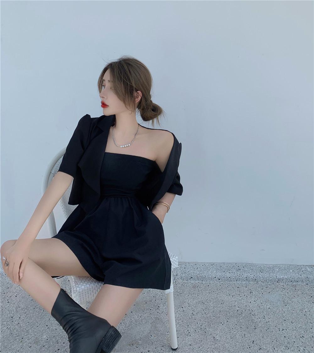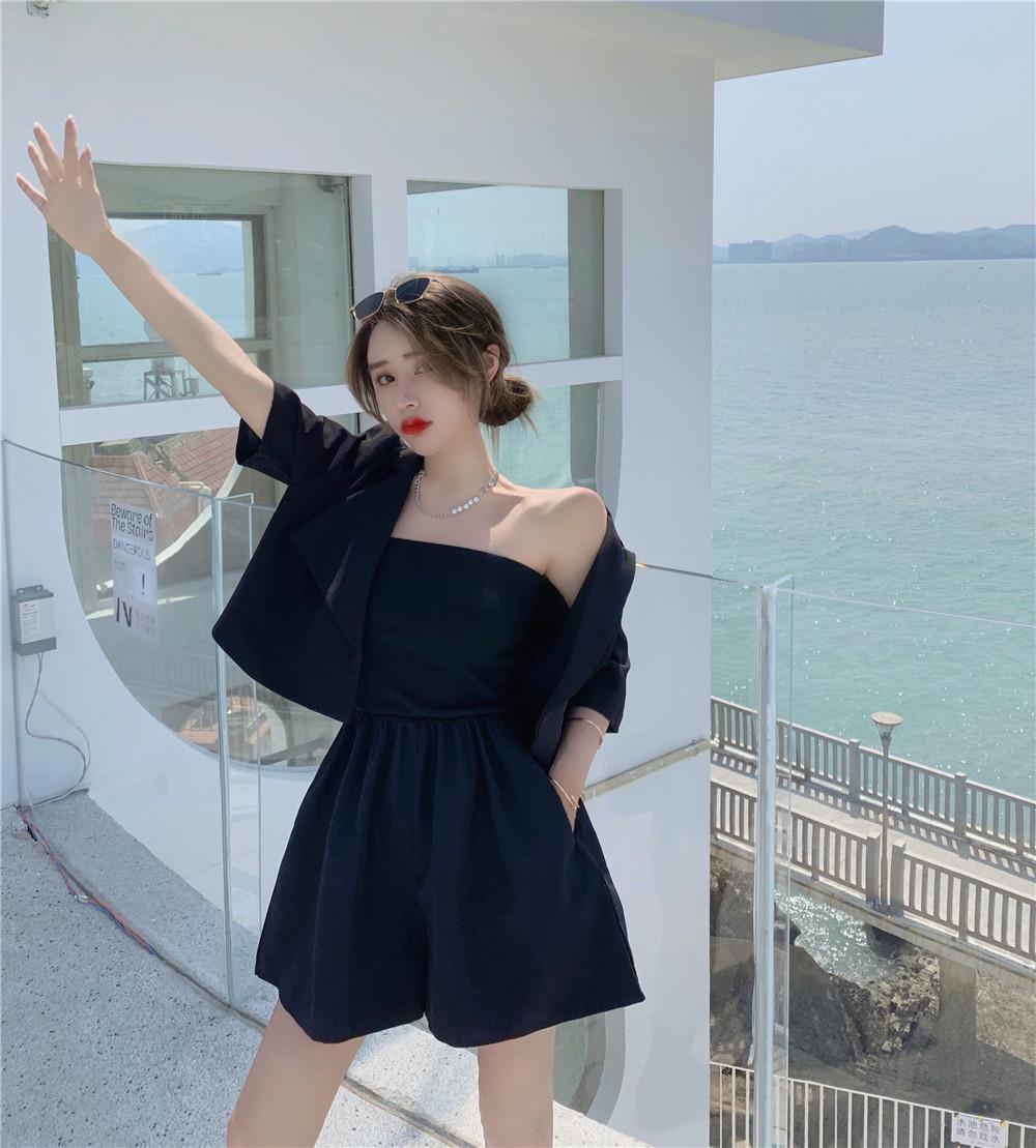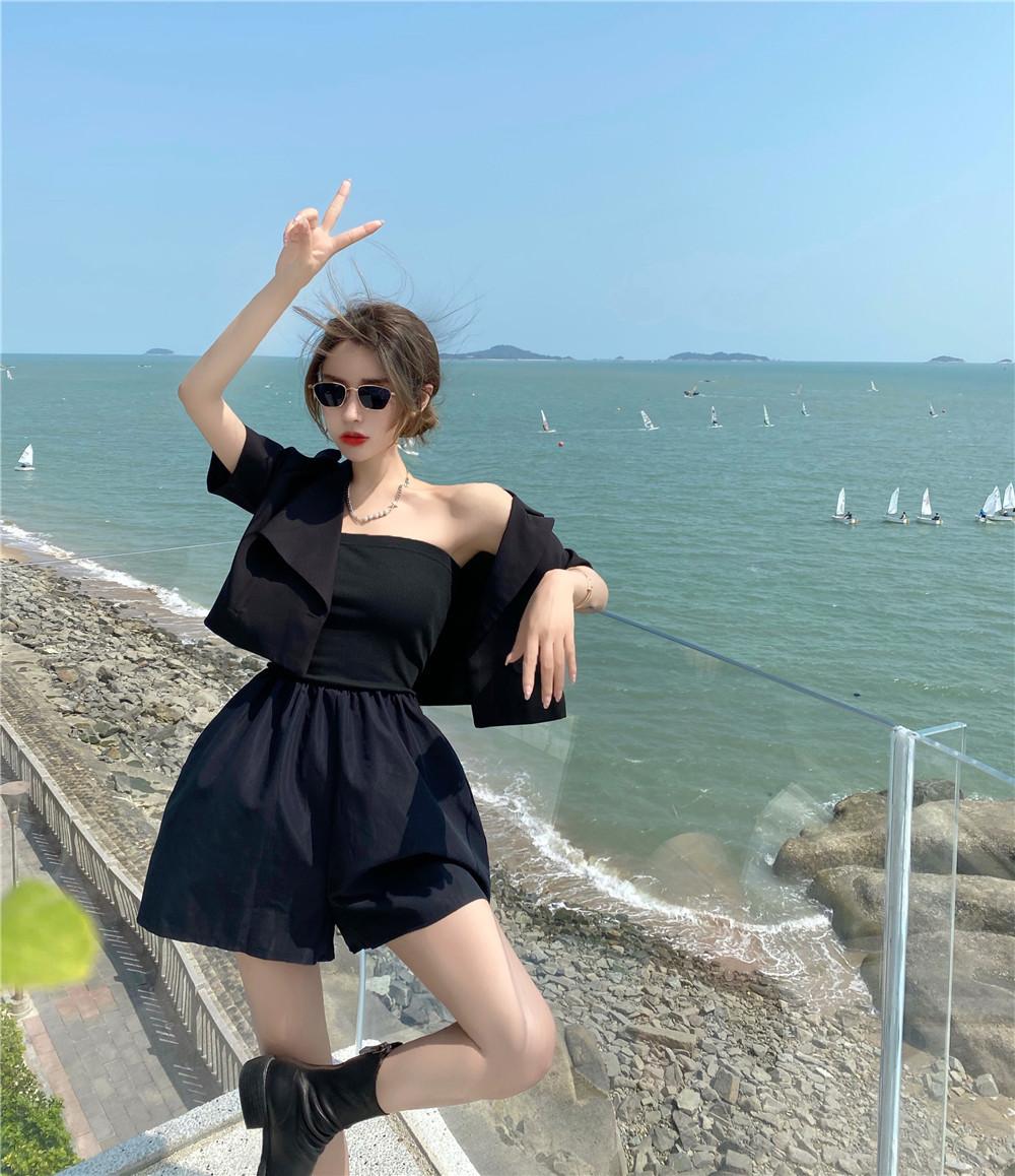 Traje de Pantalón Corto para Mujer Verano Transfronterizo Nuevo Temperamento de Alta Gama Chaqueta Pequeña de Manga Corta Pantalones de Pierna Ancha Conjunto de Dos Piezas
