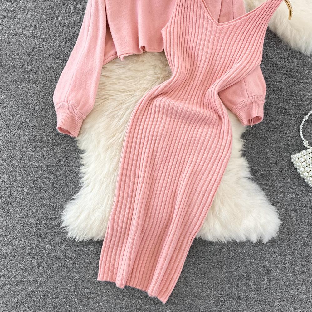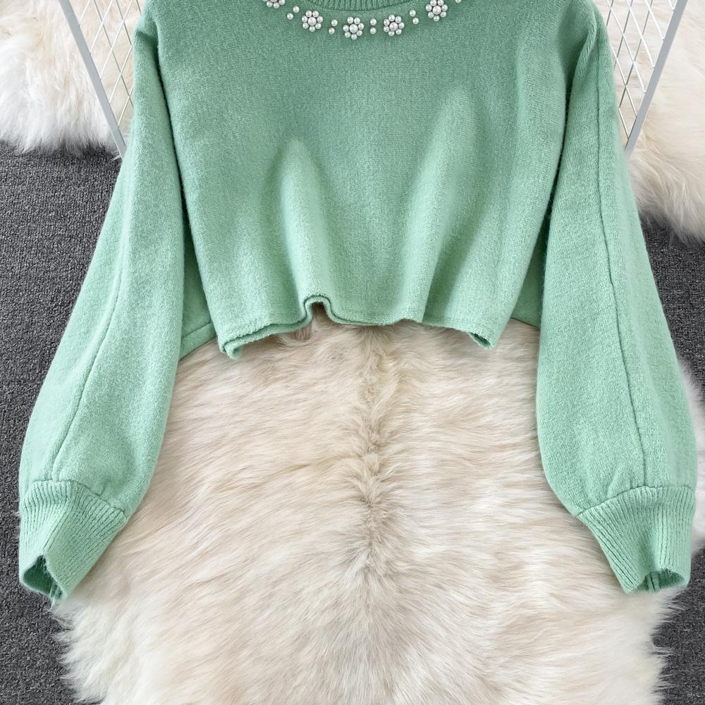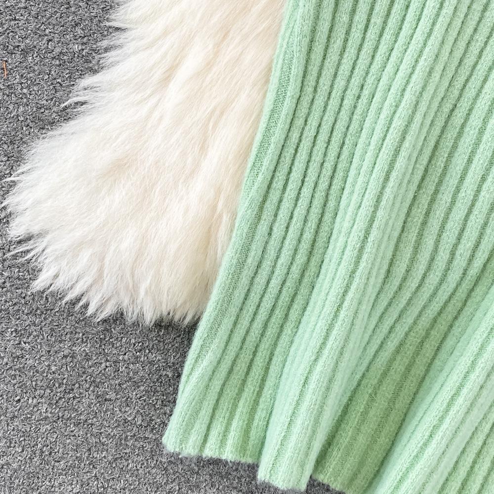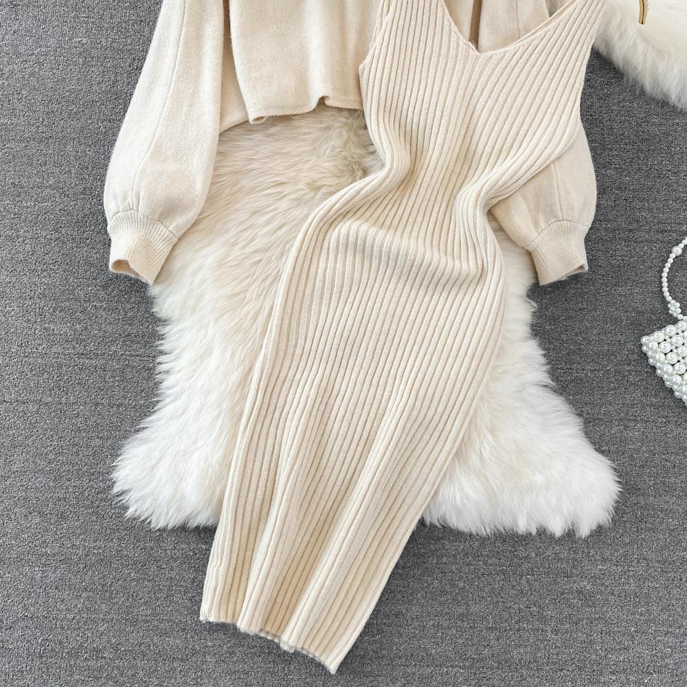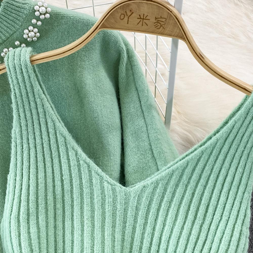 Socialité Francesa Elegante Tejido de Punto de Cintura Alta con Cuentas Conjunto de Dos Piezas para Mujer Otoño e Invierno 2025 Nuevo Vestido Chaleco de Punto