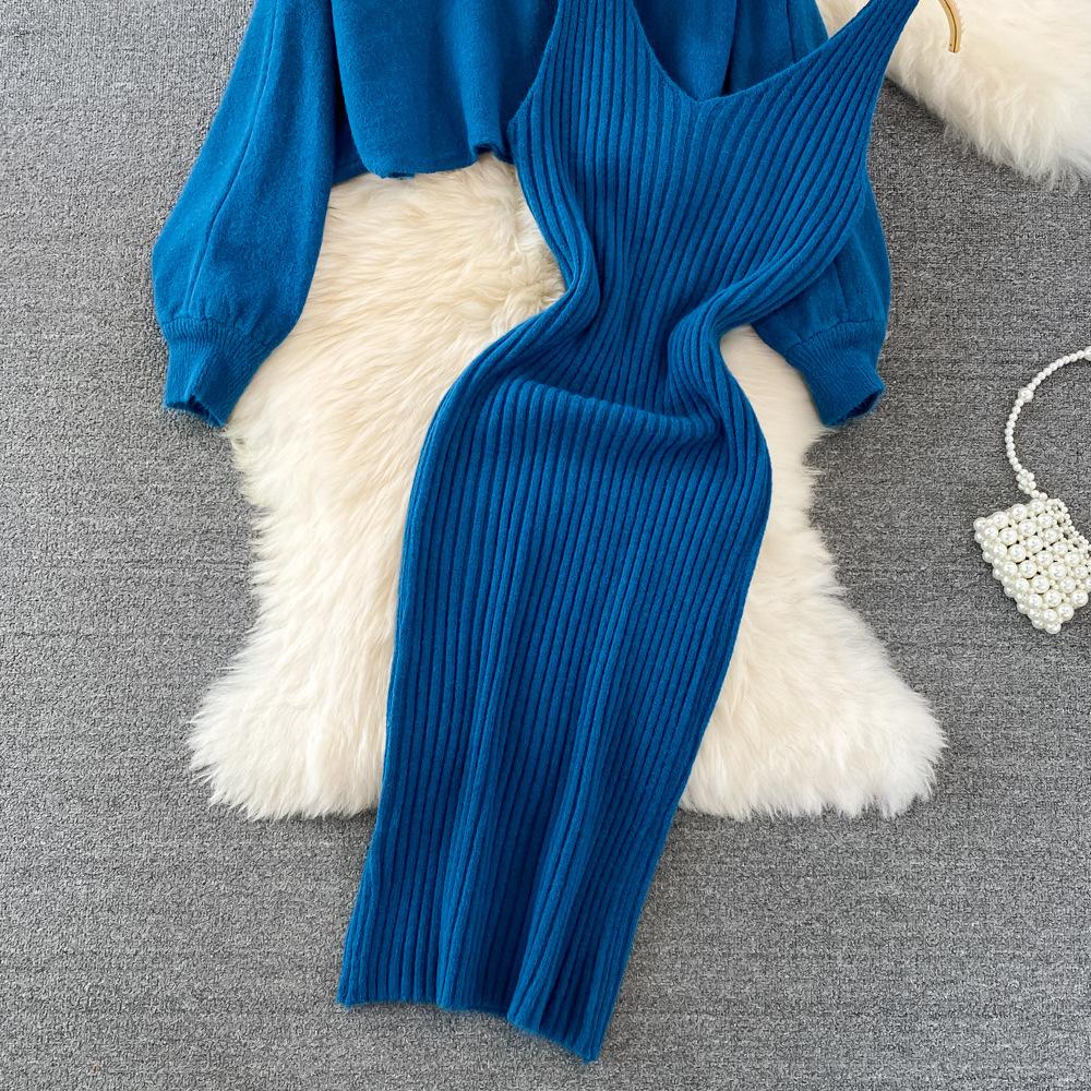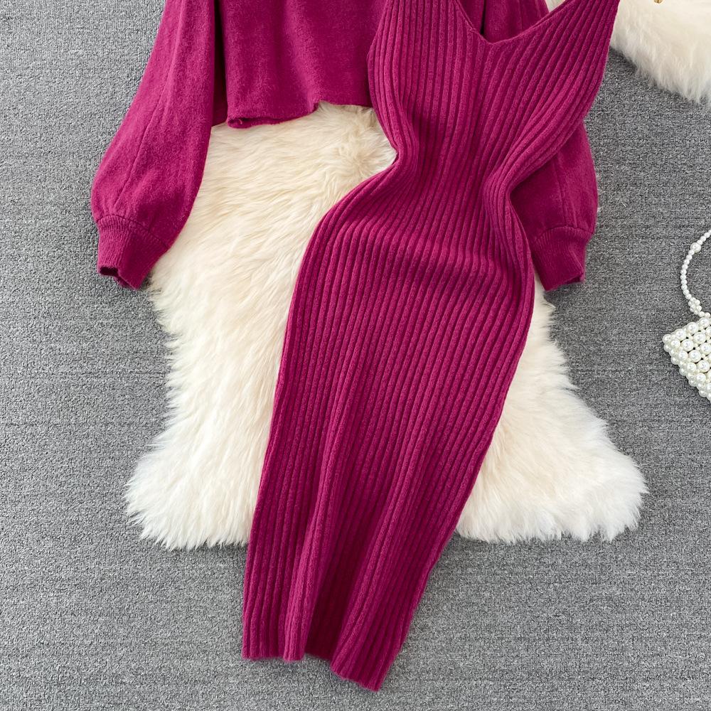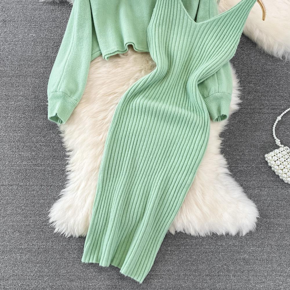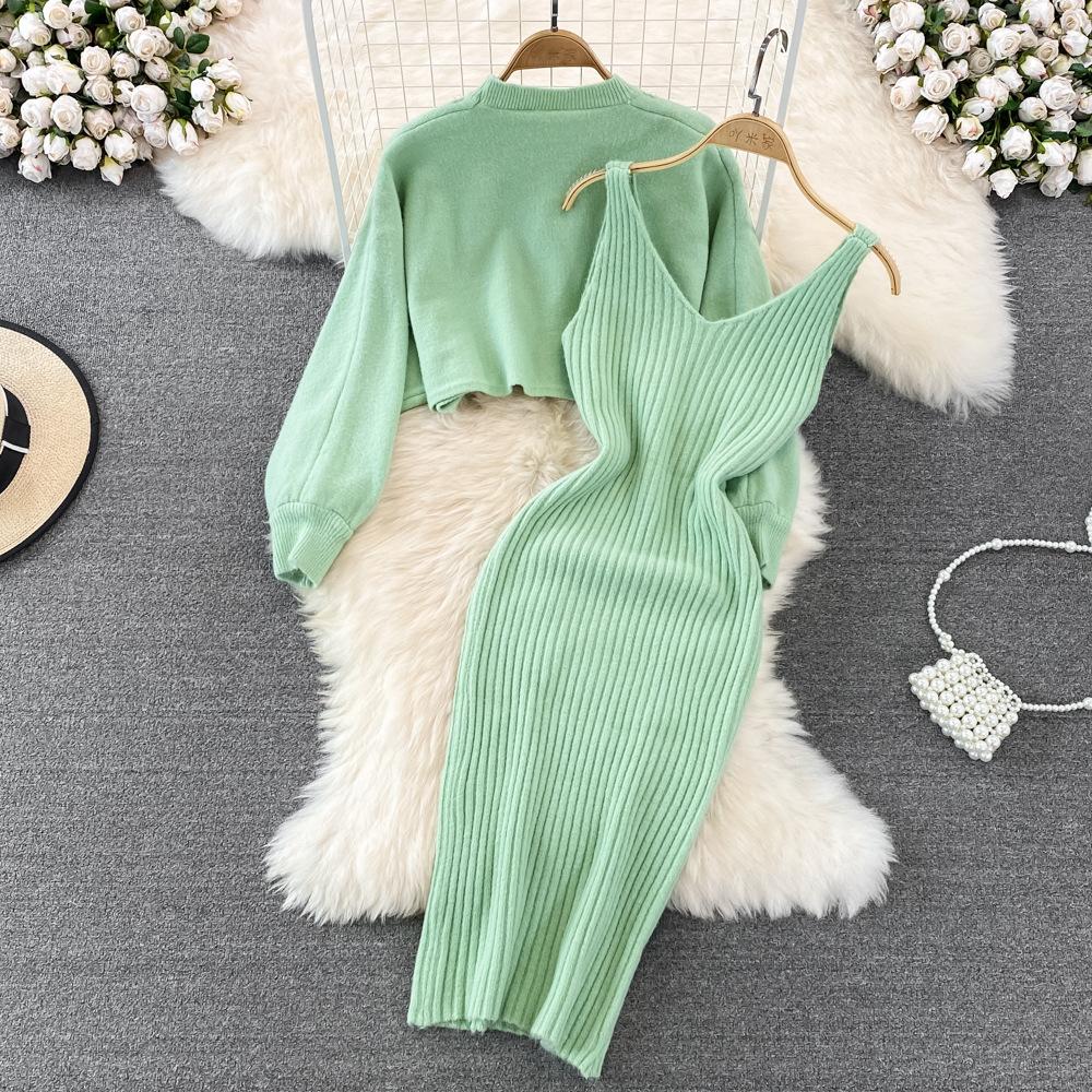 Socialité Francesa Elegante Tejido de Punto de Cintura Alta con Cuentas Conjunto de Dos Piezas para Mujer Otoño e Invierno 2025 Nuevo Vestido Chaleco de Punto